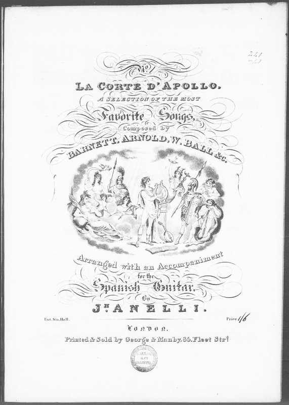 A Selection of the most Favorite Songs, composed by Barnett, Arnold, W. Ball, &c., Arranged with an Accompaniment for the Spanish Guitar. No. 1