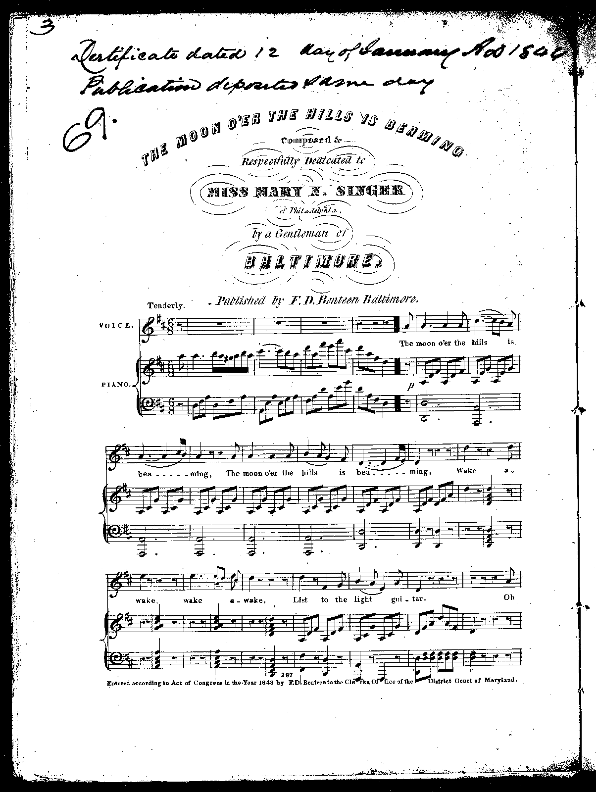 | Dedication | To Miss Mary N. Singer of Philadelphia, by a Gentleman of Baltimore. |
