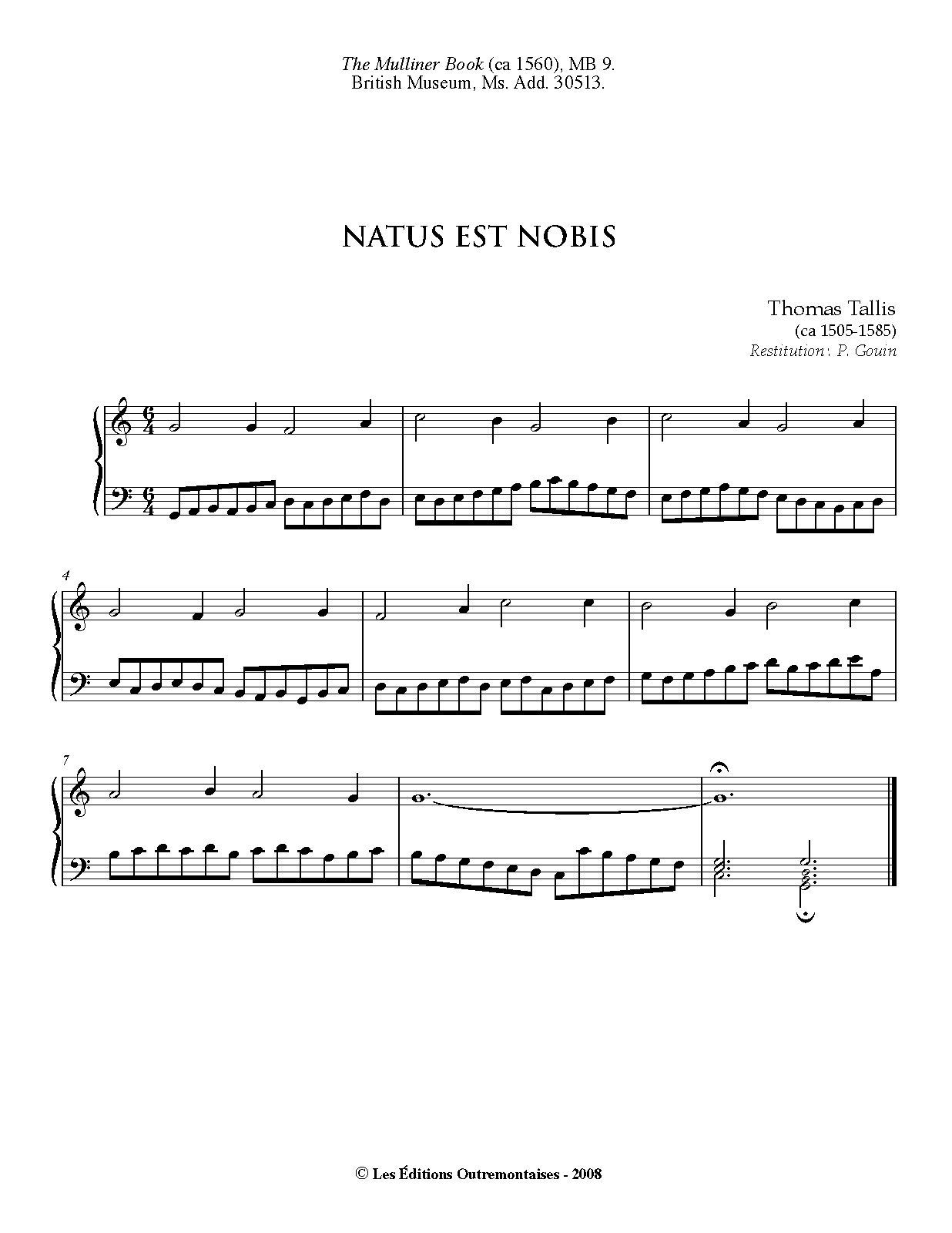 Transcribed, edited (by John Caldwell) and published in 2011 by Stainer & Bell. (Parts published by Denis Stevens in 1951, 1954 & 1973, in Musica Britannica I.) See e.g. WorldCat.)