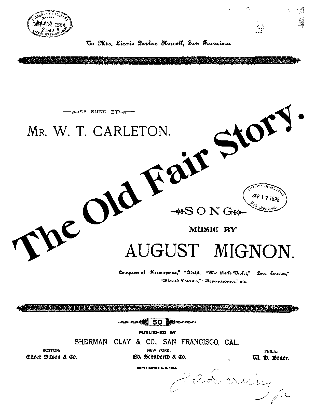 San Francisco: Sherman, Clay & Co., 1884.