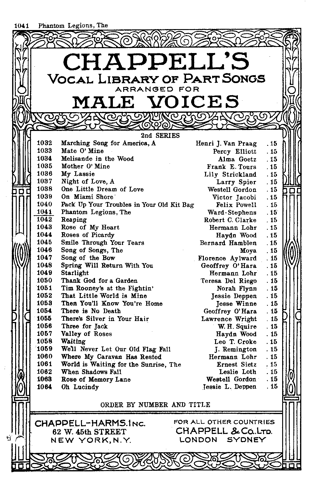 | Genre Categories | Songs; For male chorus, piano; Scores featuring male chorus; |