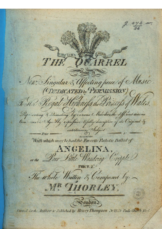 The Quarrel Being A New, Singular & Affecting peice [sic] of Music ... Representing & delineating by various Melodies, the different actions, Occurrences &c. Agreably expressive & fully descriptive of its Original & entertaining Subject. ... The Whole Written & Composed by Mr. Thorley The Quarrel, a Musical Dramatic Story, in which the diversified situations, and feelings, of the several Characters introduced, are forcibly delineated by a series of Apposite Melodies, Written & Composed by Mr. Thorley
