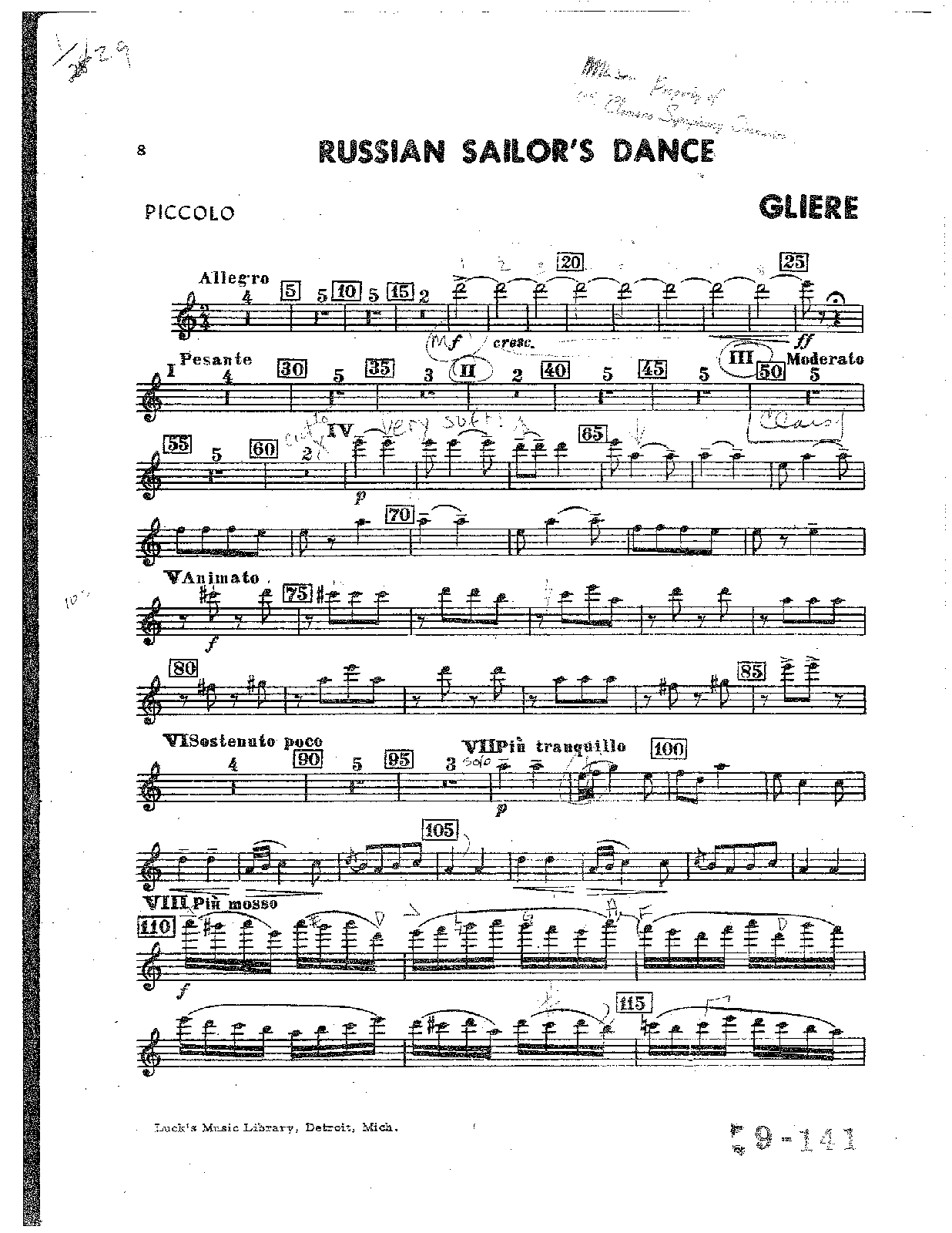| Copyright Information | This work is claimed to be under copyright in the USA due to "restoration" via the GATT/TRIPS amendment (Section 104). NIE-V8001P823 *Russian Sailors' Dance (Act I) issued by Muzgiz and Universal in 1930. |