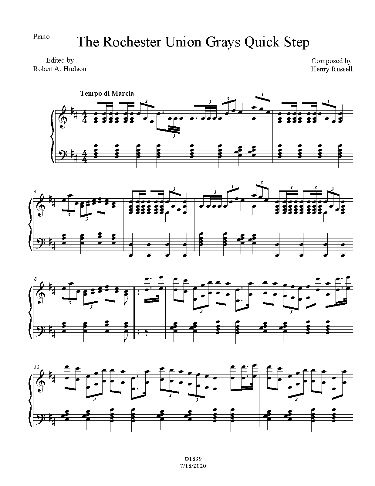 | Work Title | The Rochester Union Grays Quick Step |