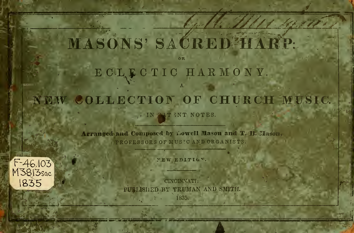 | Alternative. Title | Mason's Sacred Harp ; A Collection of Church Music, Consisting of a great variety of Psalm and Hymn Tunes, Anthems, Sacred Songs and Chants, original and selected; Including many new and beautiful subjects from the most eminent Composers, harmonized and arranged expressly for this work. |