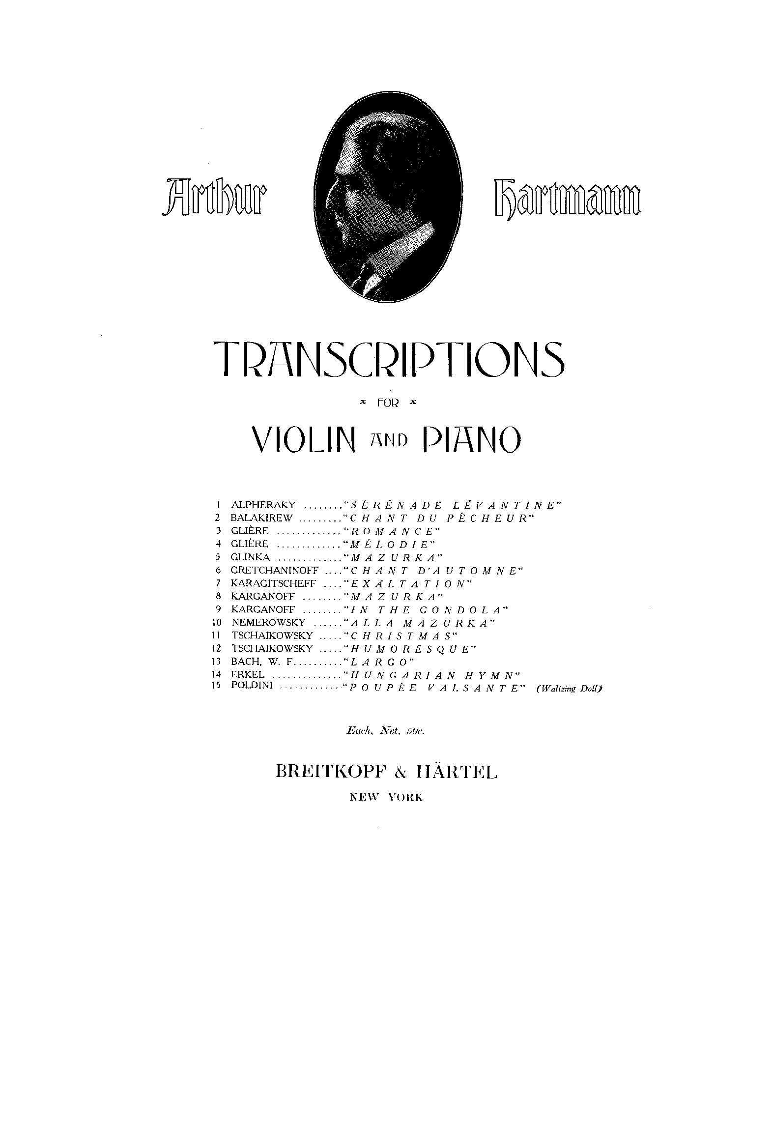 Publisher. Info. New York: Breitkopf und Härtel, 1916. Plate Hartmann-11.