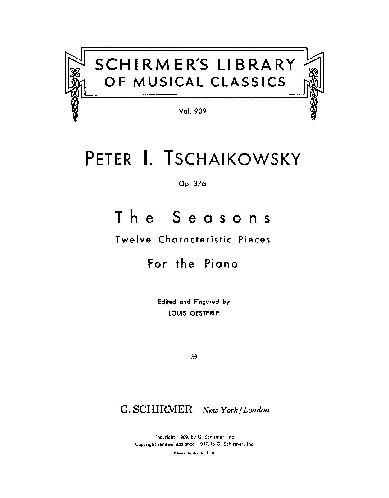 Publisher. Info. Schirmer's Library of Musical Classics, Vol.909