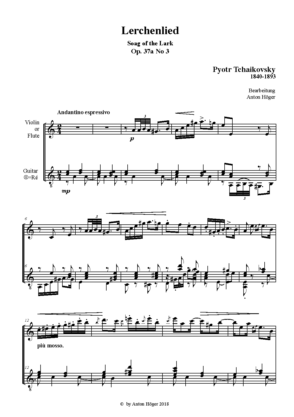 For Flute or Violin and Guitar (Höger)