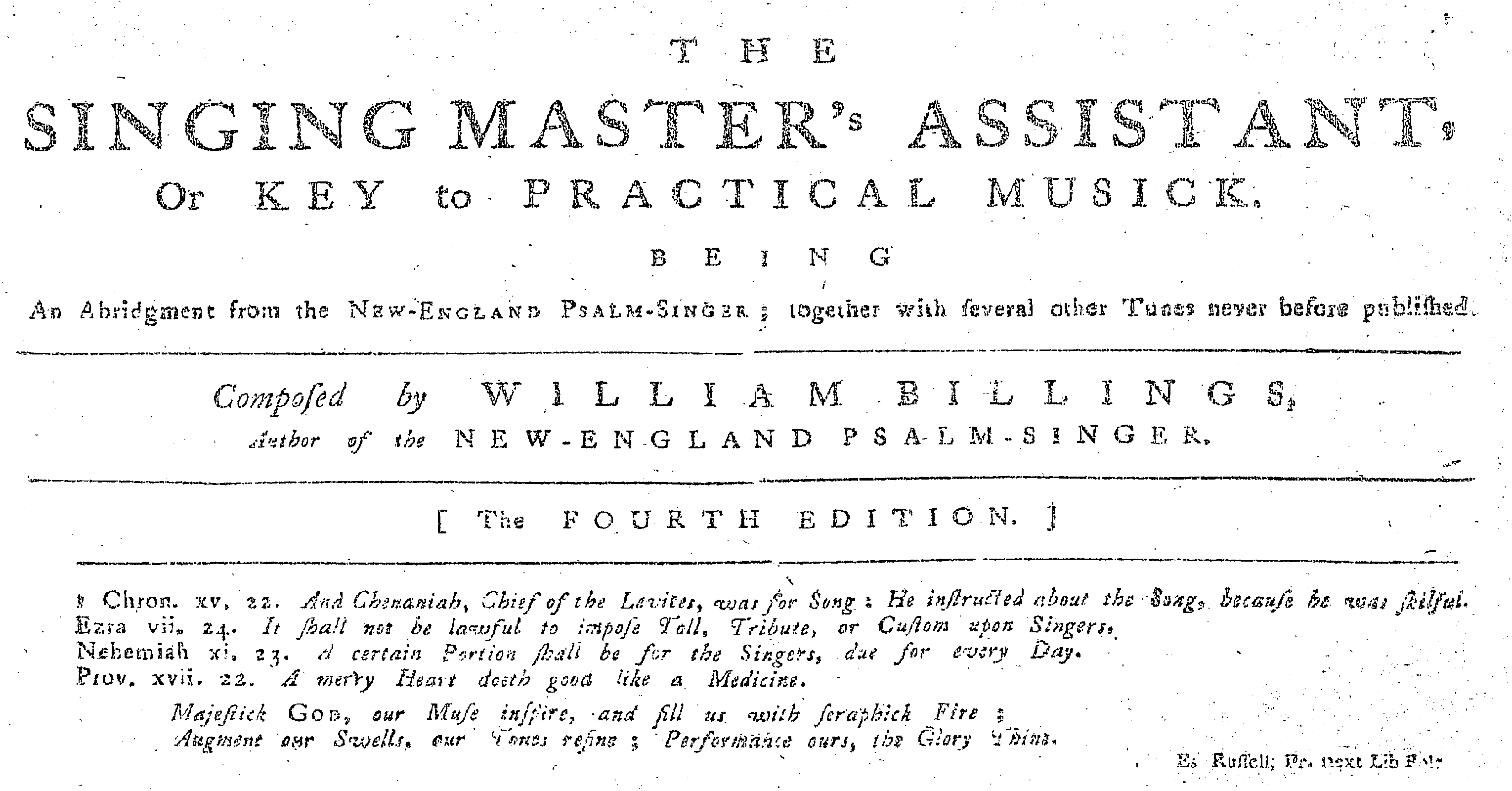 | Work Title | The Singing Master's Assistant, or Key to Practical Music. Being an Abridgement from the New-England Pslm-Singer; together with several other Tunes, never before published. |