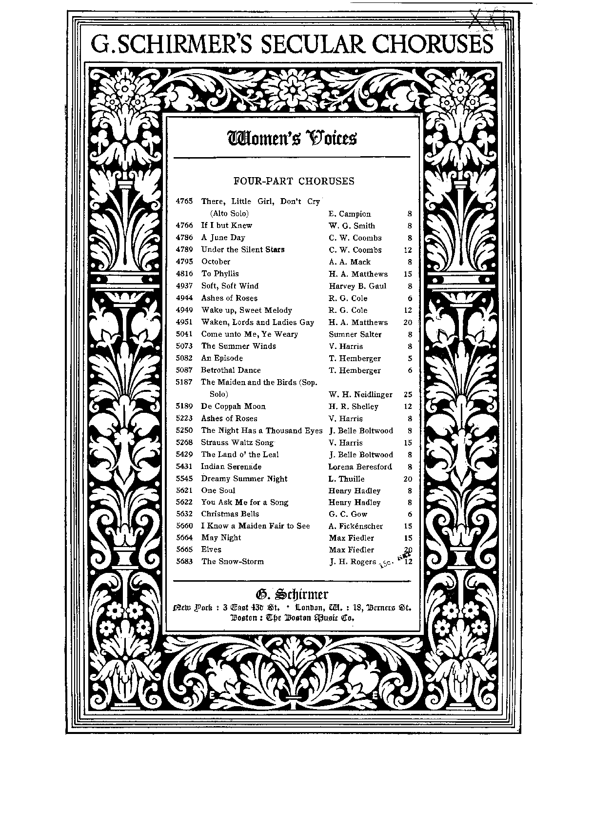 | Genre Categories | Secular choruses; Choruses; For female chorus, piano; |