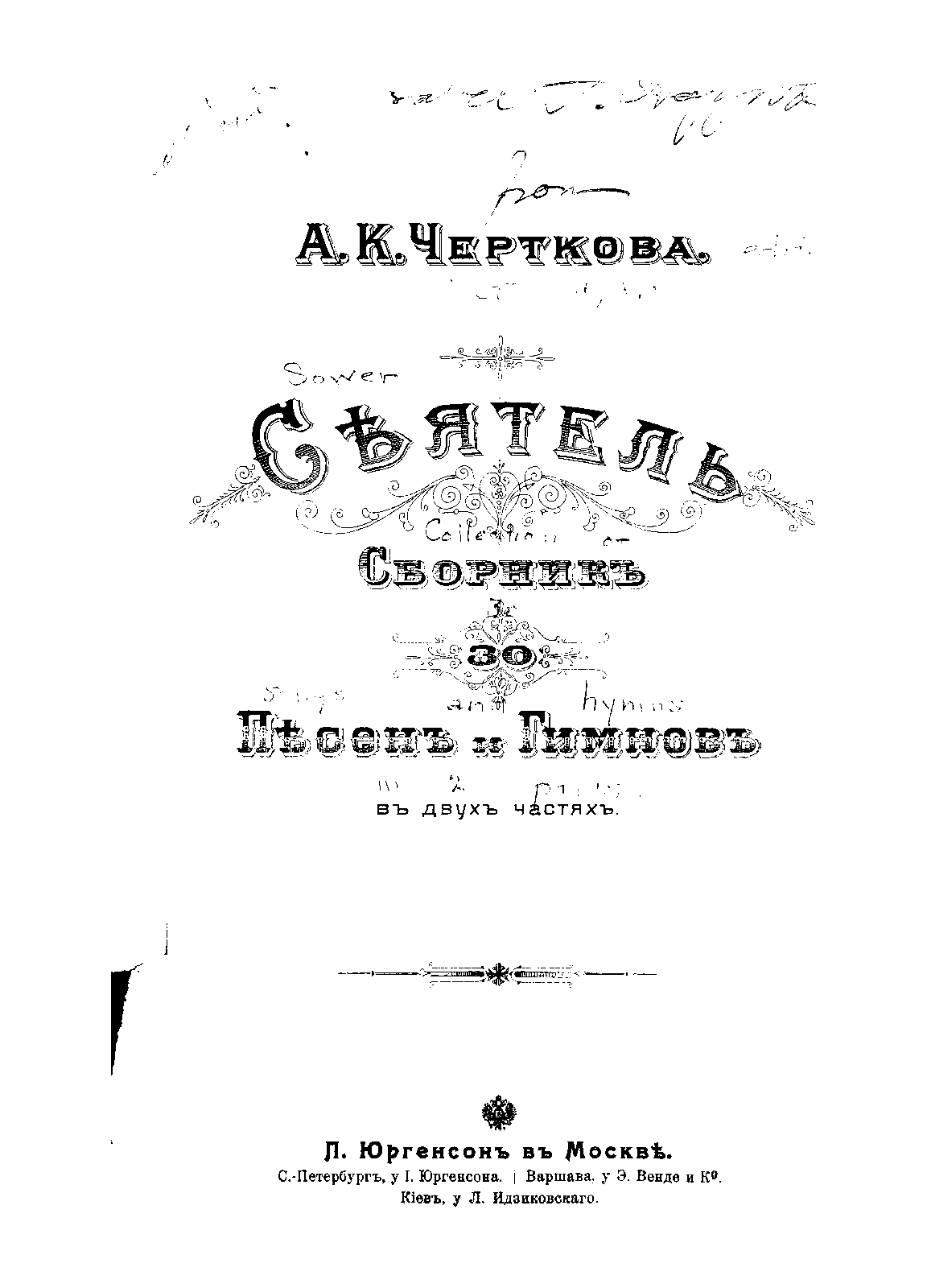 | Alternative. Title | Сѣятель: сборникъ 30 пѣсенъ и гимновъ въ двухъ частяхъ |