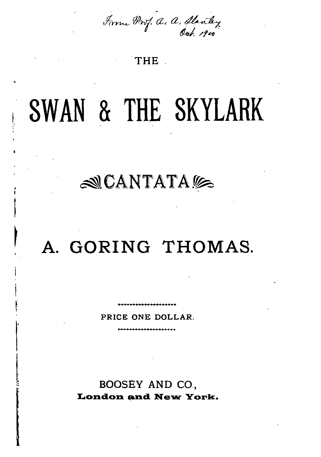 Posthumously orchestrated from the composer's piano score by Charles Villiers Stanford.