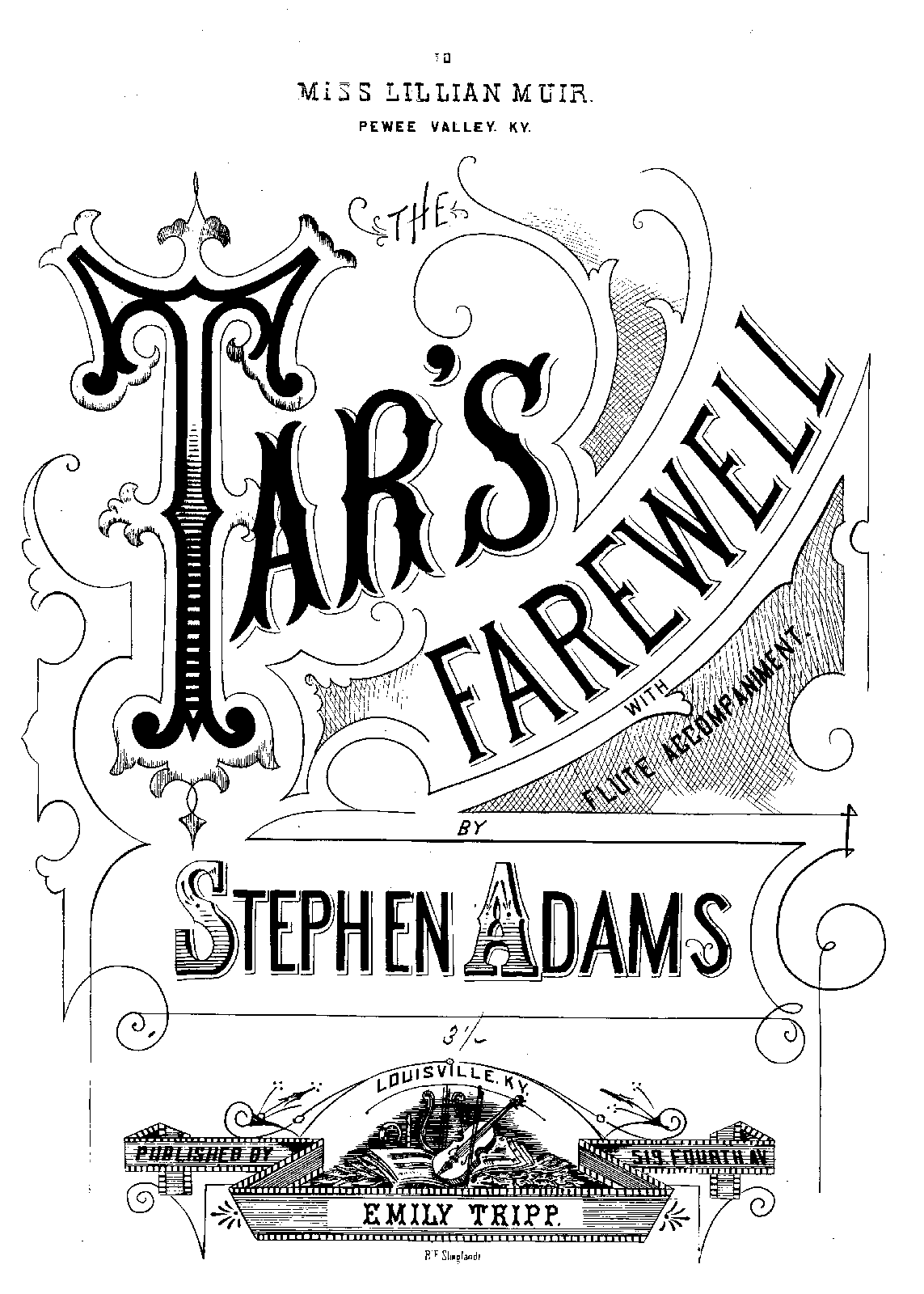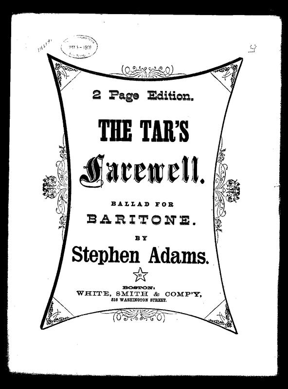 Published in an arrangement in 1878 by White, Smith & Co. (scanned by the Library of Congress). The song "The Sailor's Farewell" (pub.1879) available at the same site is the same song melodically (suggesting what Tar means in this context.)