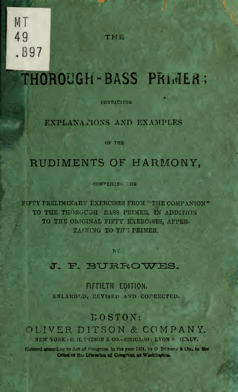 | Alternative. Title | The Thorough-Base Primer: containing explanations and examples of the rudiments of harmony; with fifty exercises |