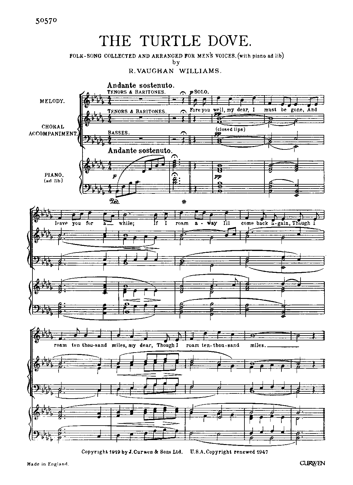 Publisher. Info. London: J. Curwen & Sons, 1919 (renewed 1947). Plate 50570.