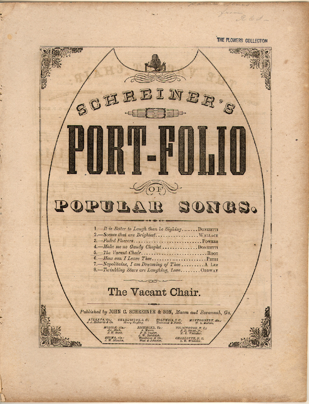 Schreiner's Port-Folio of Popular Songs, No.5 Macon: John C. Schreiner & Son, n.d.