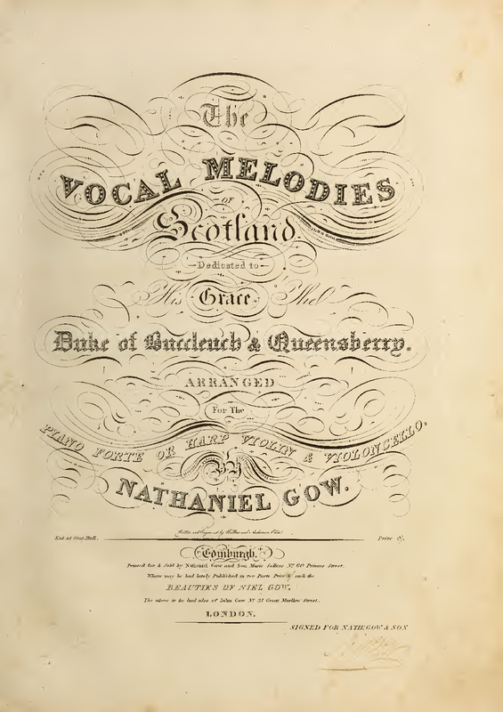 | Alternative. Title | The Vocal Melodies of Scotland ... arranged for the Piano Forte or Harp, Violin & Violoncello by Nathaniel Gow |