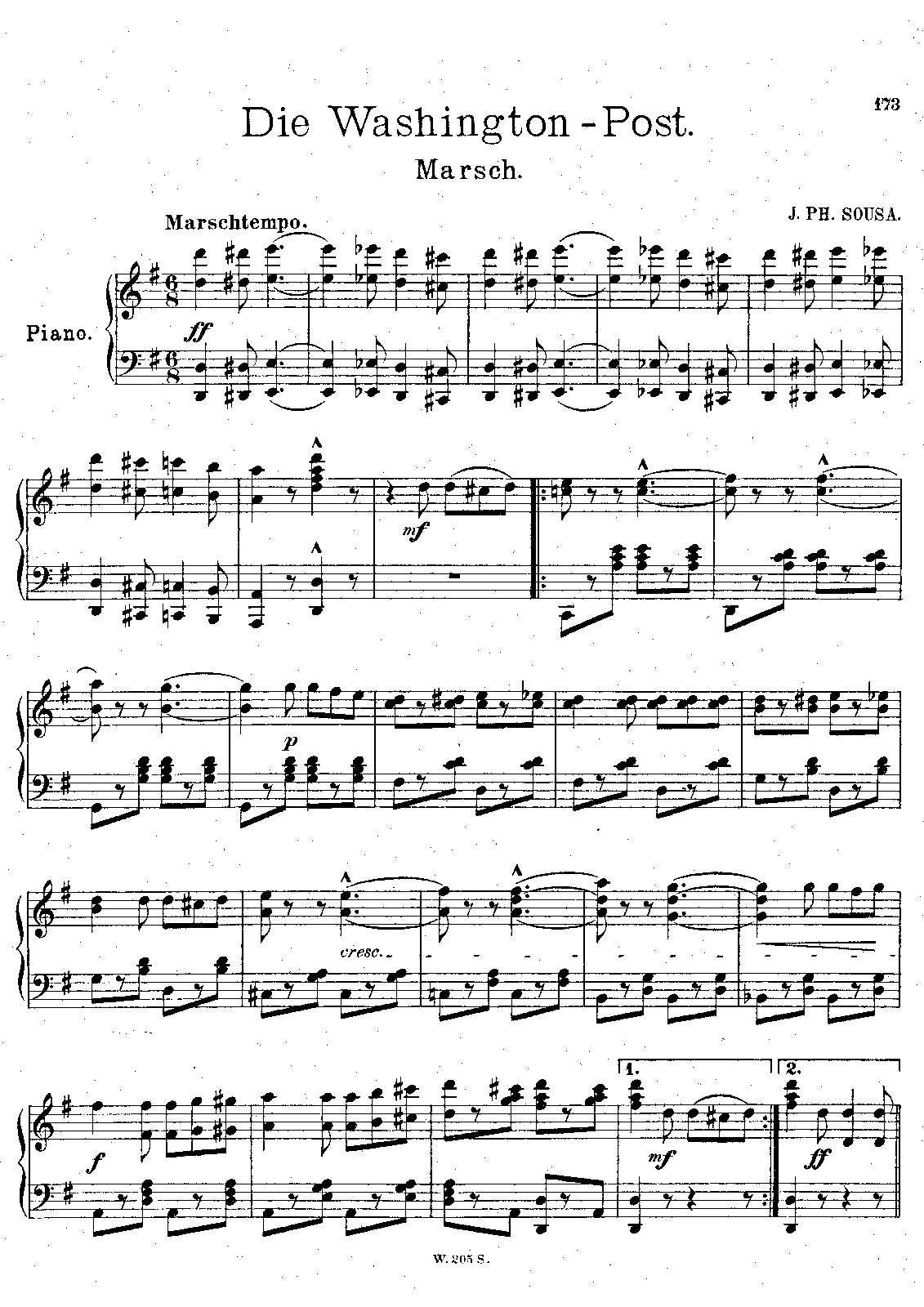 Publisher. Info. Philadelphia: Harry Coleman, 1894. Plate The Washington Post March.3.