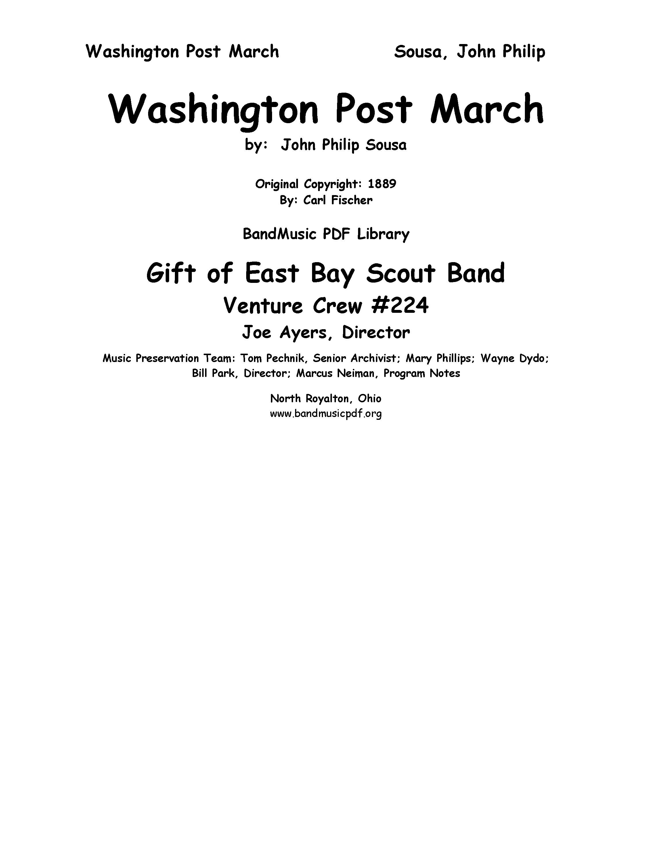 Publisher Info. Washington, DC: United States Marine Band, 2009.