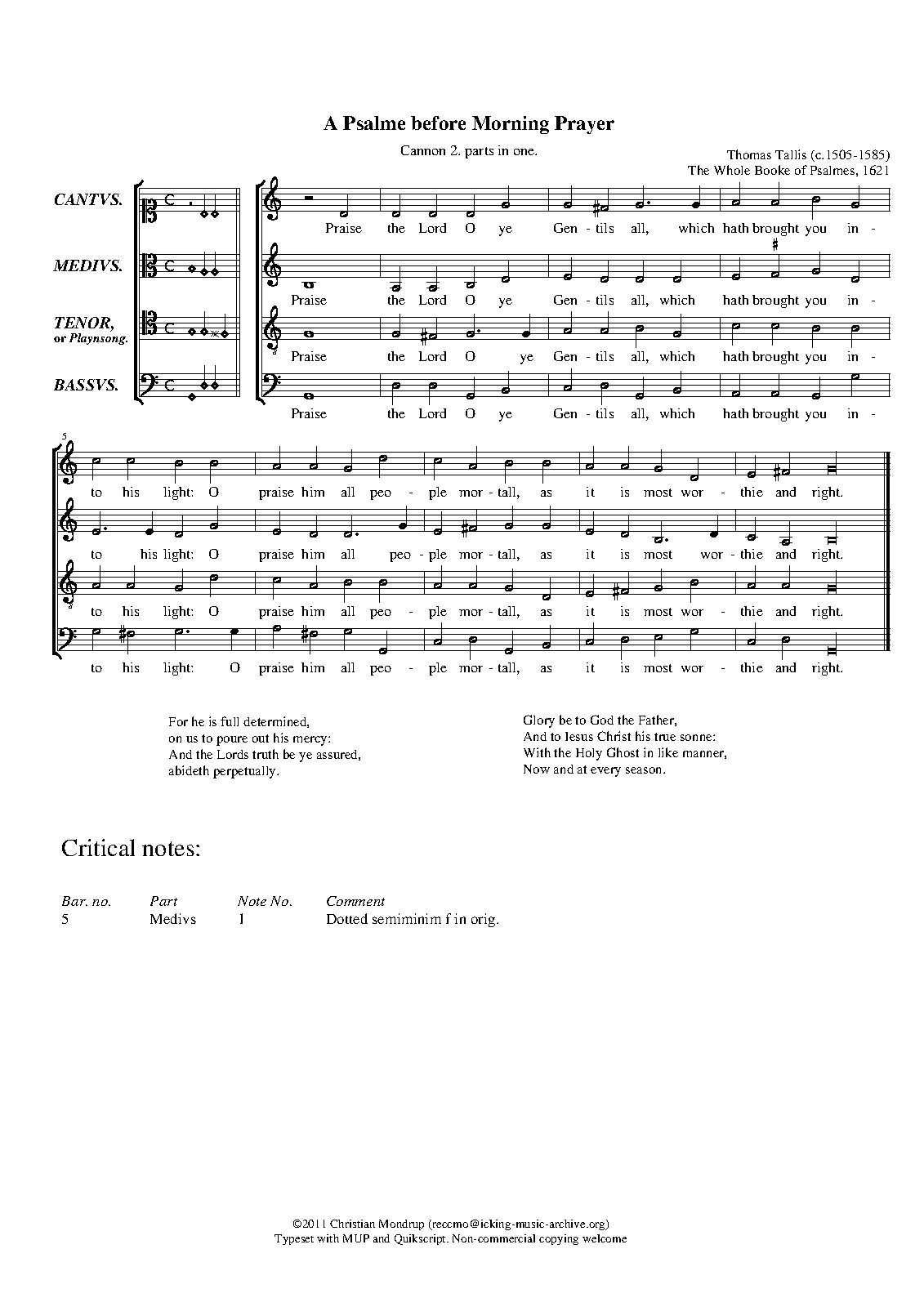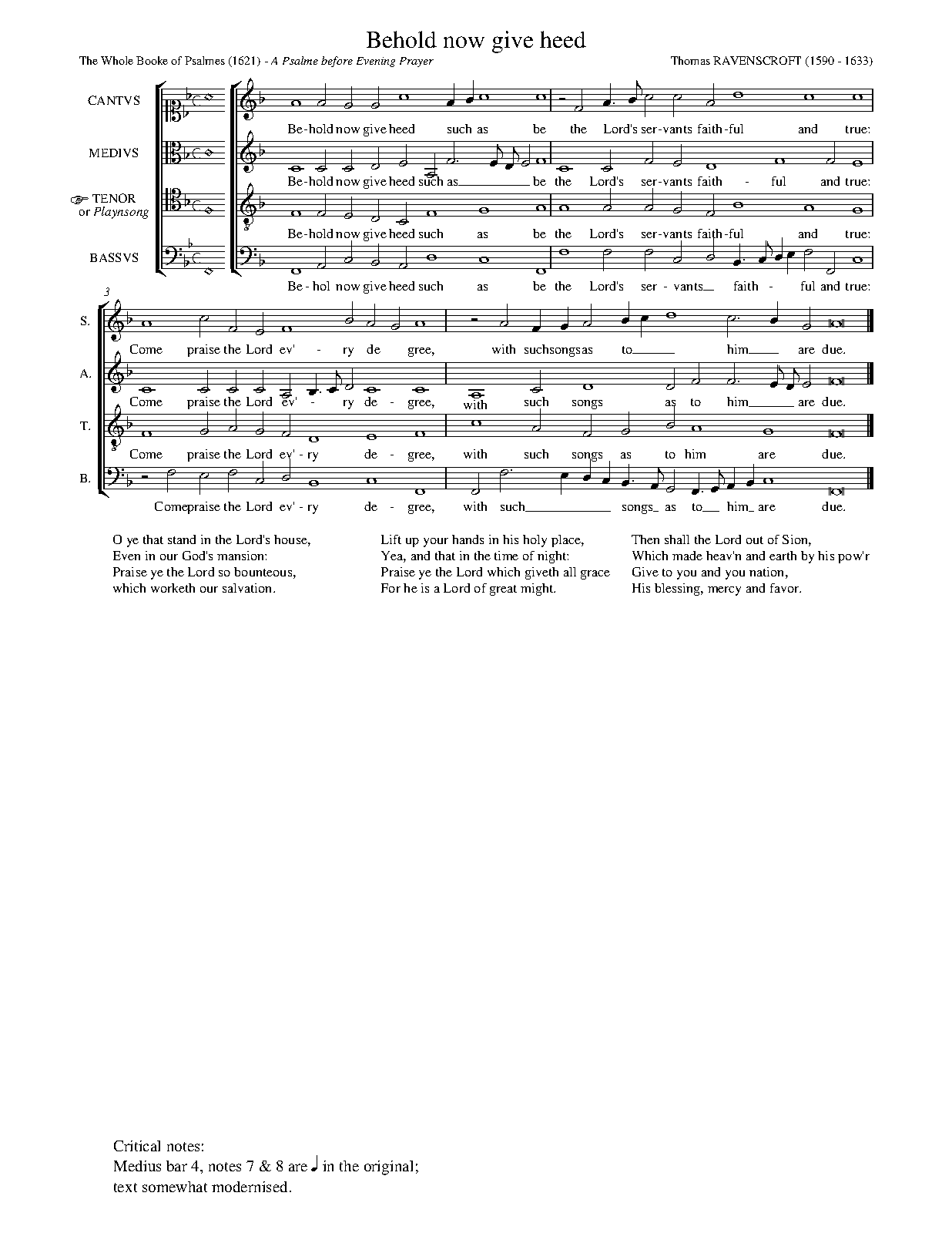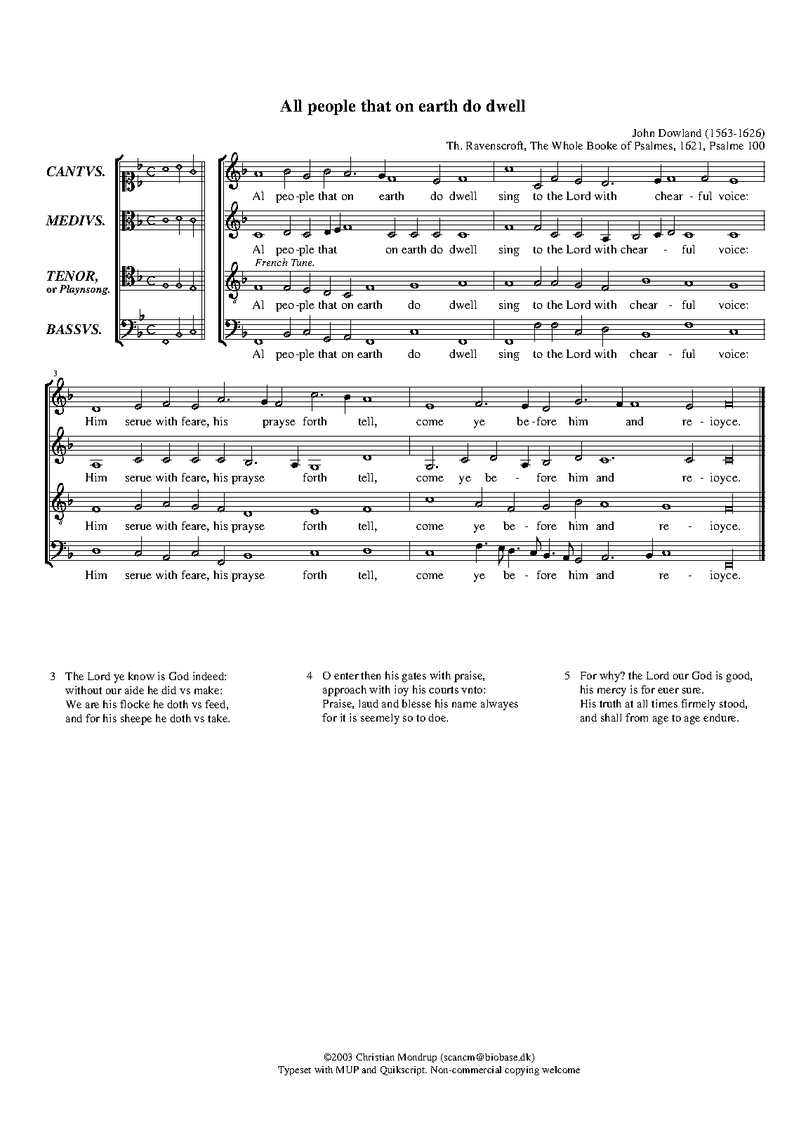 ⇒ 12 more: Lord of Whom I do Depend (The Humble Sute of a Sinner) • Farmer: O Come and Let Us Now Rejoice (Venite exultemus - Ps.95) • We Praise Thee God (Te Deum) • O All Ye Works of God the Lord (Song of the 3 Children) • The Onely Lord of Israel (Benedictus) • Farmer: My Soul does Magnify the Lord (Magnificat) • O Lord Because My Hearts Desire (Nunc dimittis) • Farmer: What Man Soever (Quicunque vult) • Parsons: O Lord Turne Not Away Thy Face (The Lamentation) • Farmer: Our Father Which in Heaven Art (The Lord's Prayer) • Farmer: Hark Israel (The X Commandements) • The Complaint of a Sinner