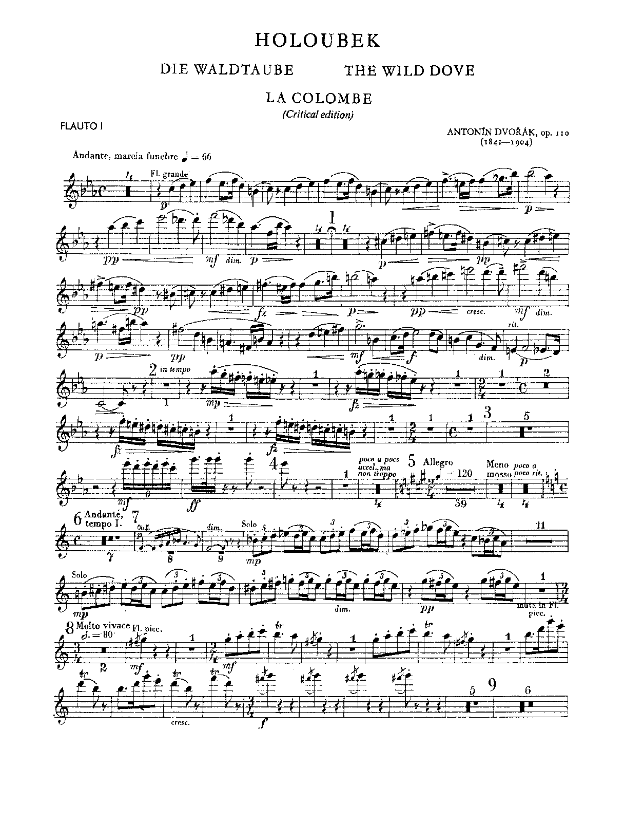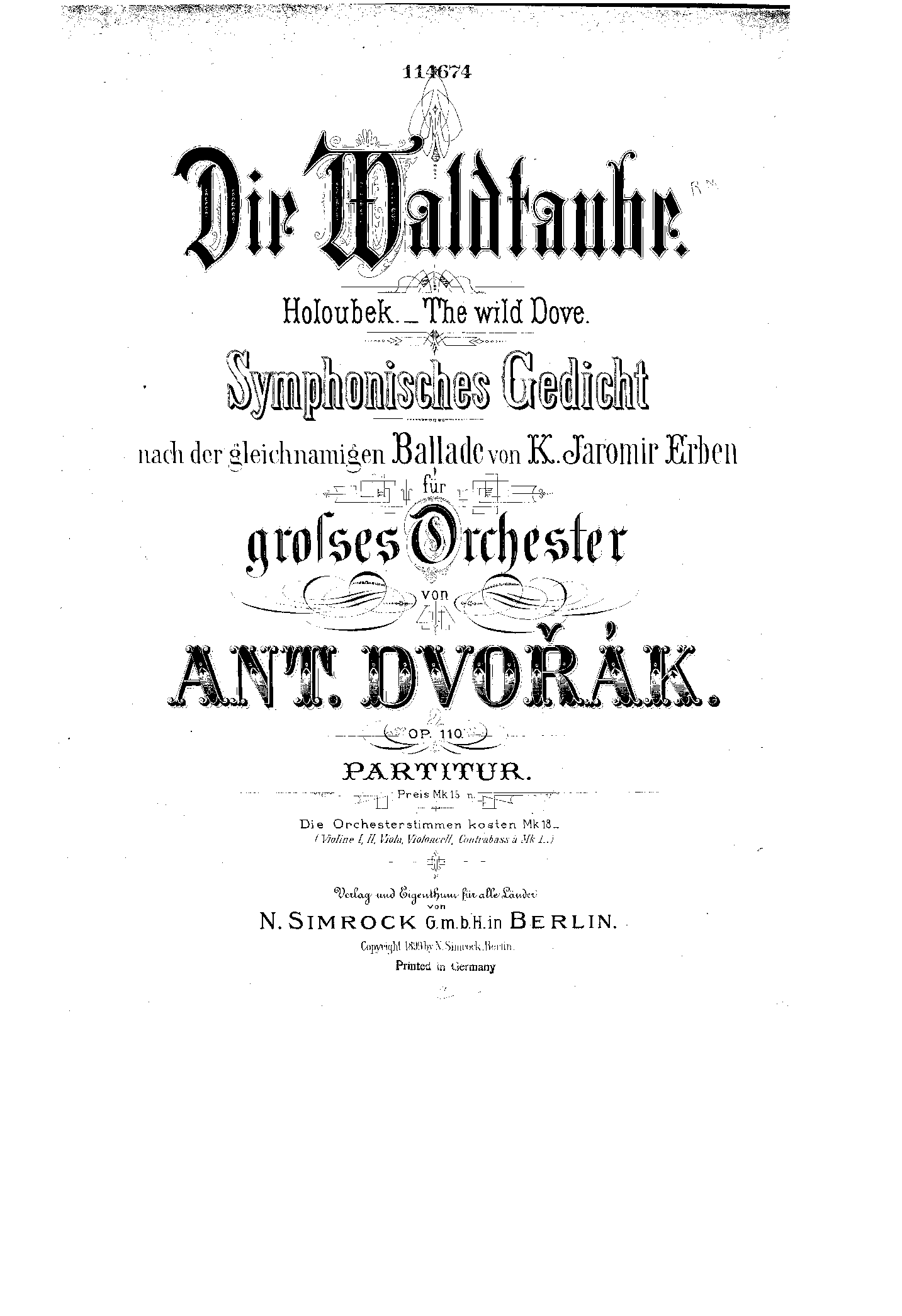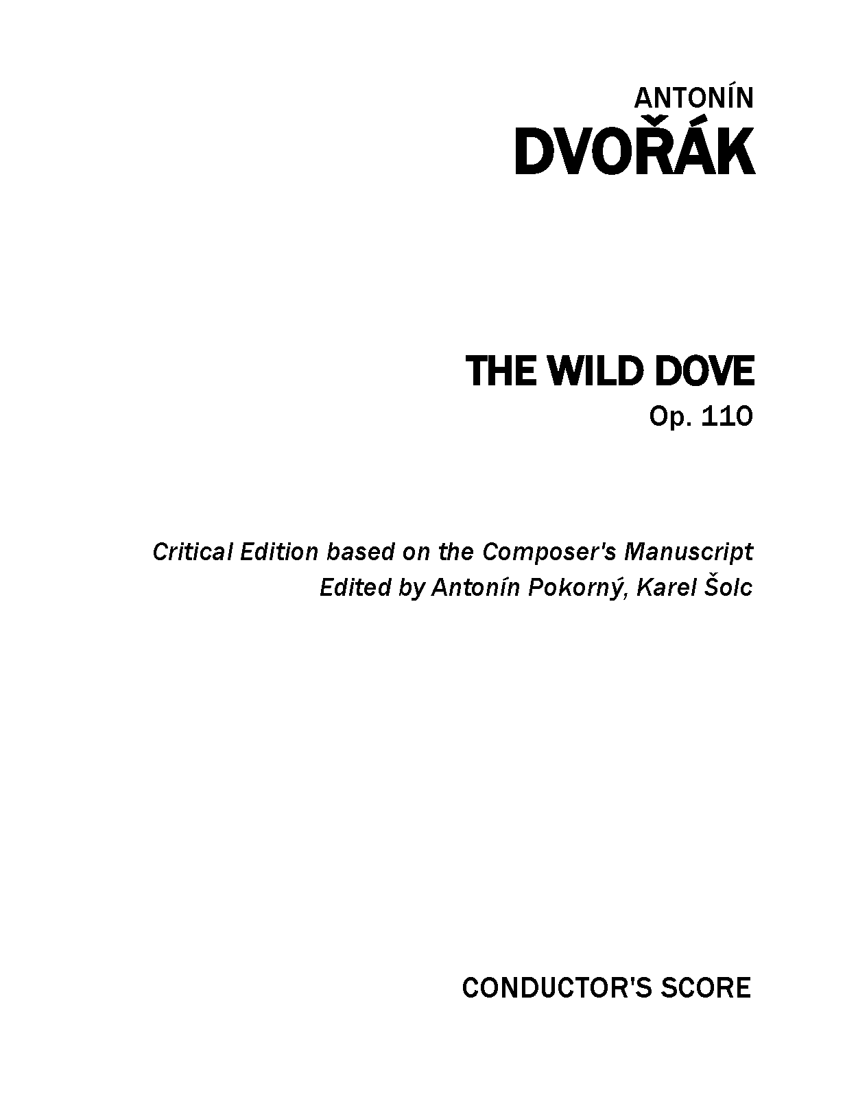 | Extra Information | The Czech title Holoubek is sometimes translated into English as "The Wood Dove", but appears more accuratley as "The Wild Dove" in Grove's Dictionary and in Burghauser's thematic catalogue, as well as the collected works of K. J. Erben, on whose folk-tale Dvořák's symphonic poem is based. Version History
