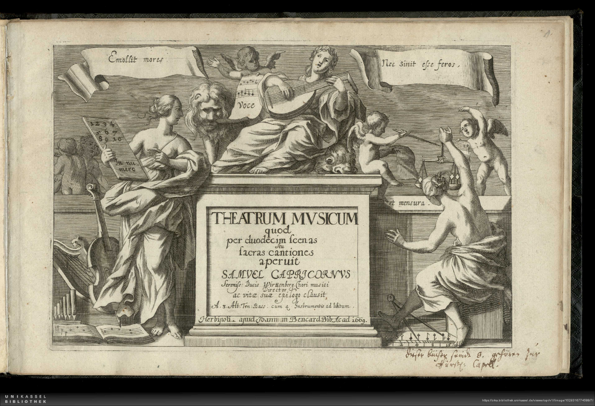 | Alternative. Title | Theatrum musicum quod per duodenim scenas seu sacras cantiones ... A. 3. Alt. Ten. Bass. cum 4. Instrumentis ad libitum |