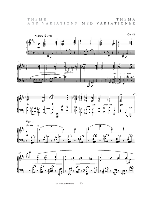 | Extra Information | According to a letter, Nielsen embarked on Thema med variationer barely two months after finishing the Chaconne. Though the work interested him enormously, he had to put it aside for a while in order to complete Kantate ved Grosserer-Societetets Hundredaarsfest. |