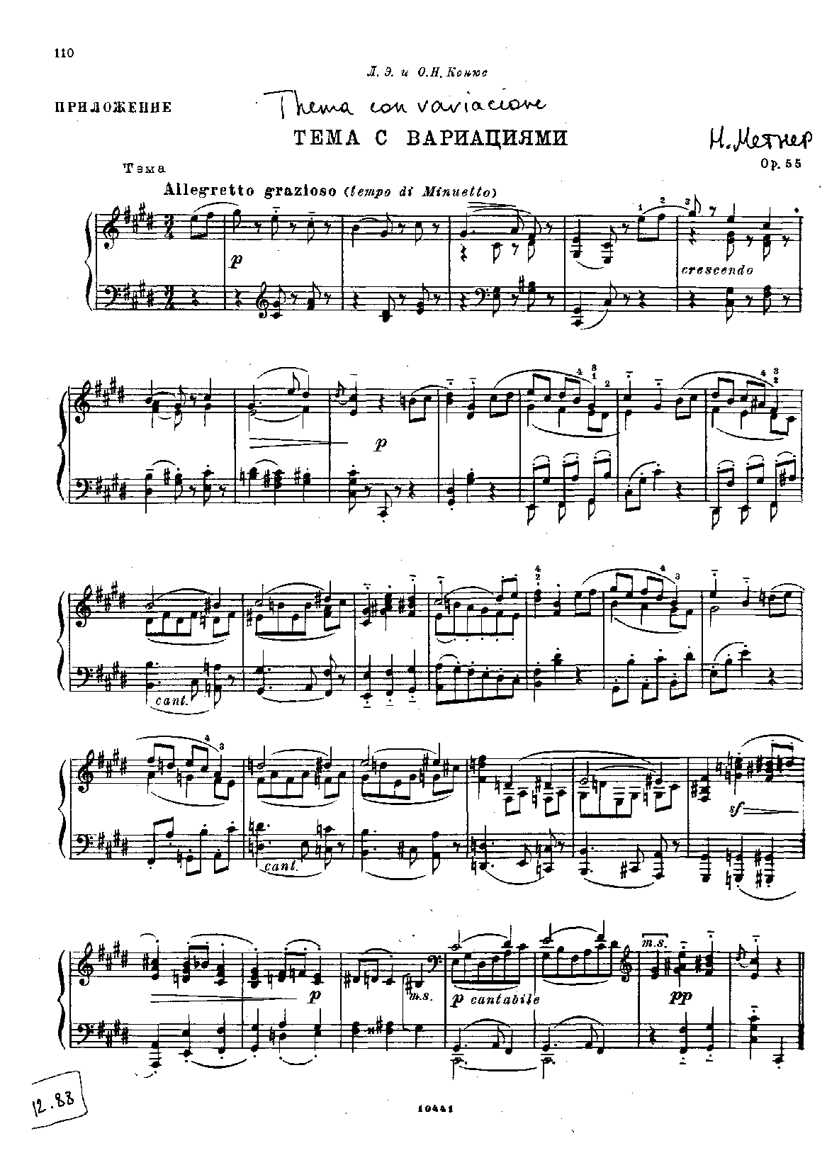 Publisher. Info. N. Metner: Sobranie Sochinenii, Tom IV: Sochineniia dlia fortepiano (pp.226-41)