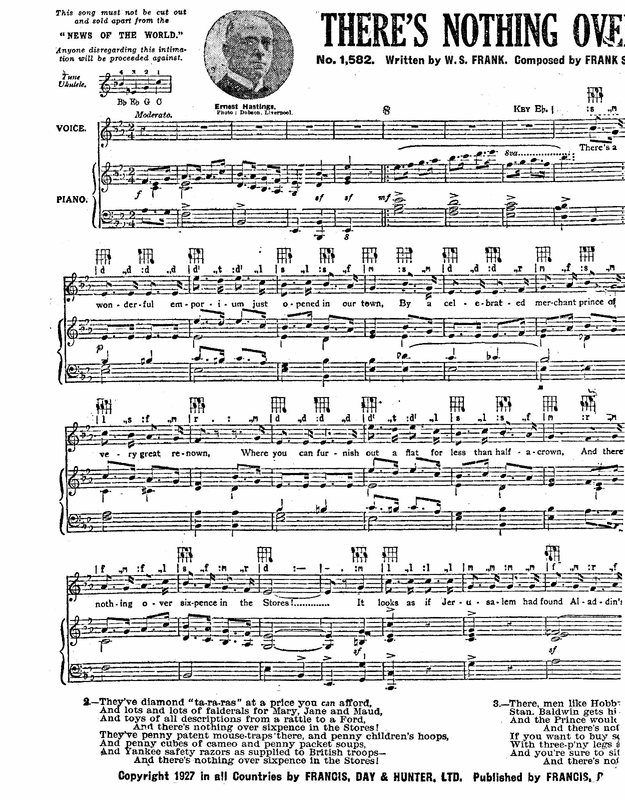 | Extra Information | A topical song about Woolworths, when their items were famously priced sixpence. It stayed that way until the WW2. Recorded by Ernest Hastings with his own piano accompaniment on HMV. |