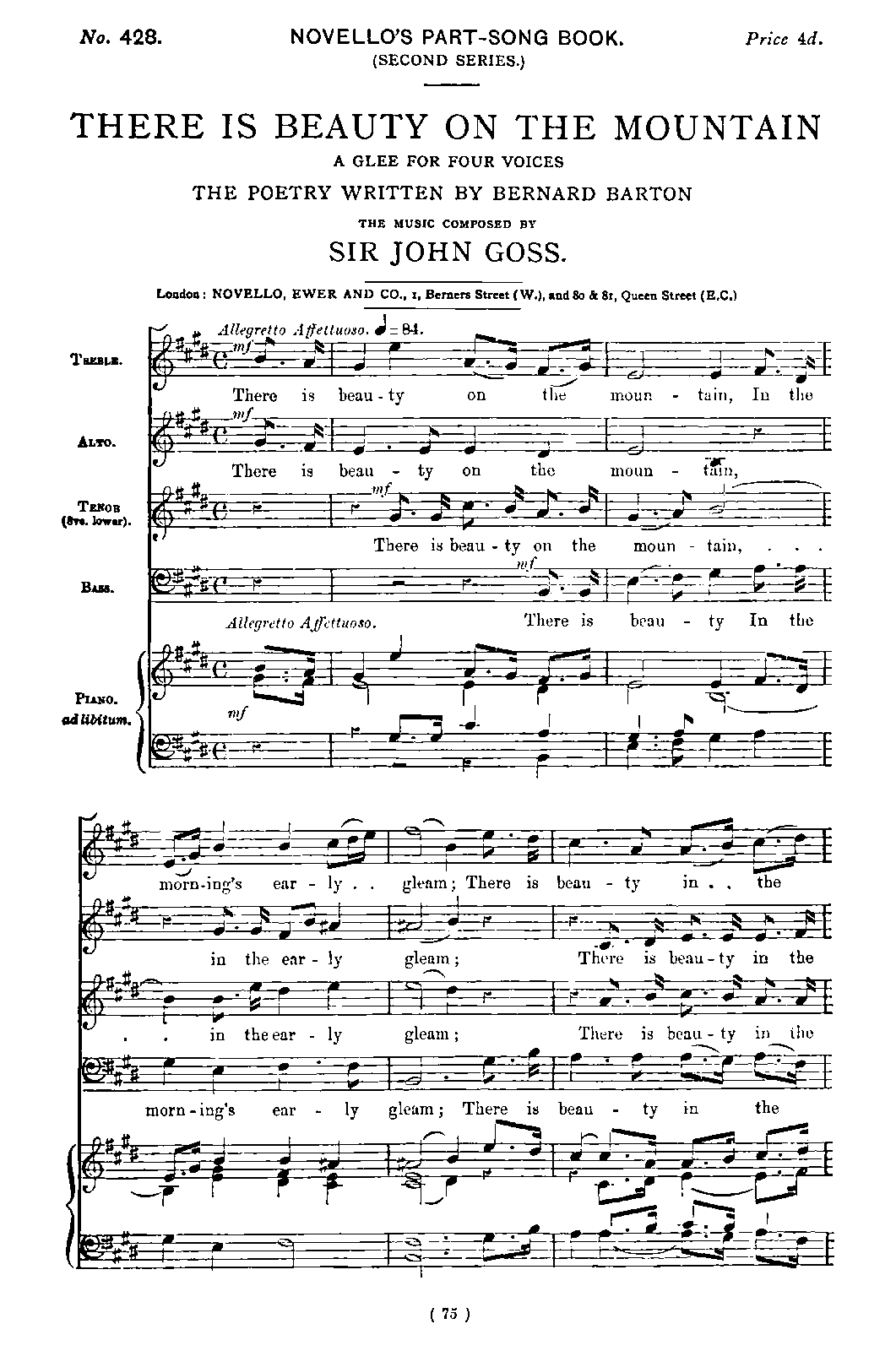 There Is Beauty on the Mountain. A Glee for Four Voices.