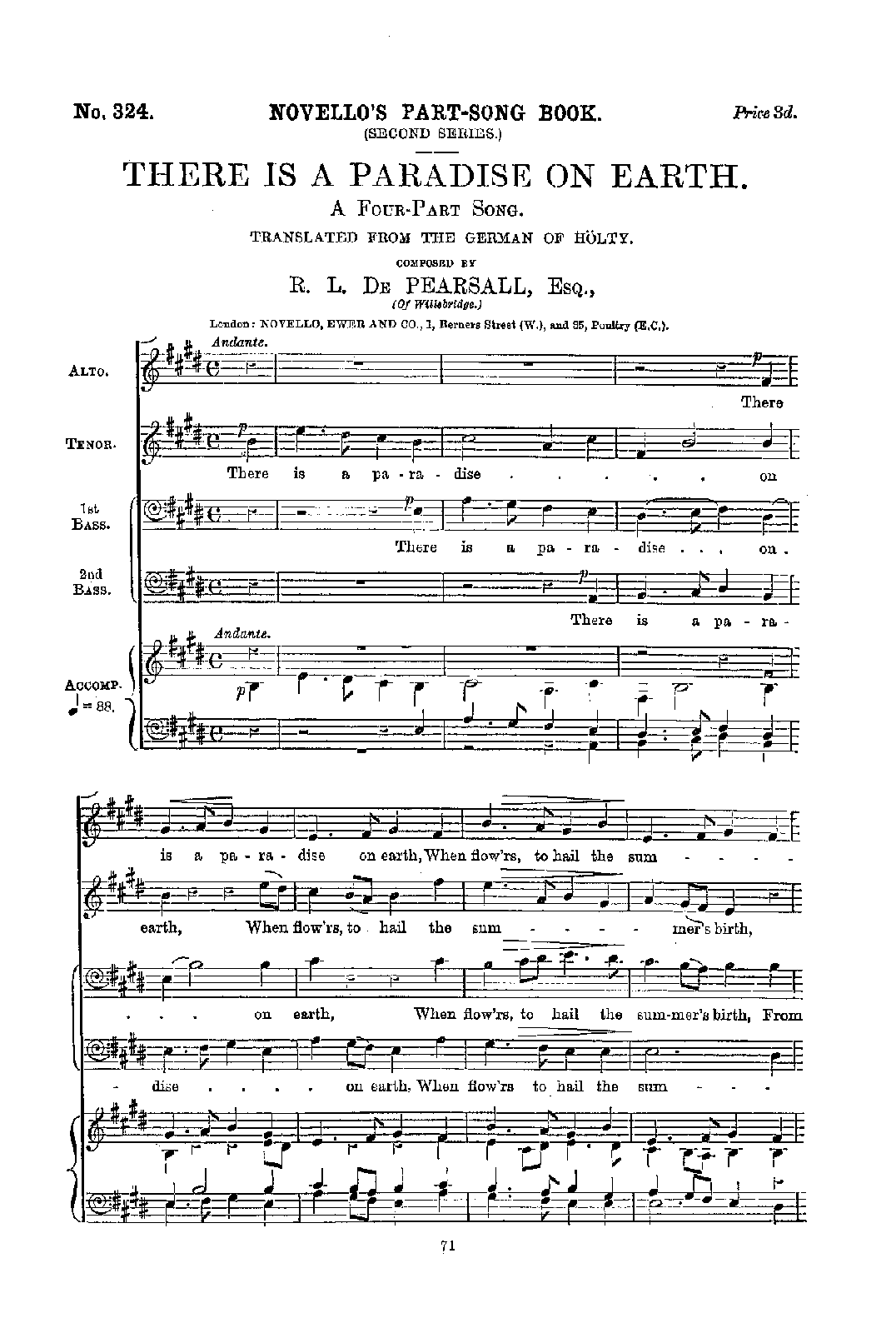 | Alternative. Title | There Is a Paradise On Earth. A Four-Part Song. Translated from the German of Hölty. |