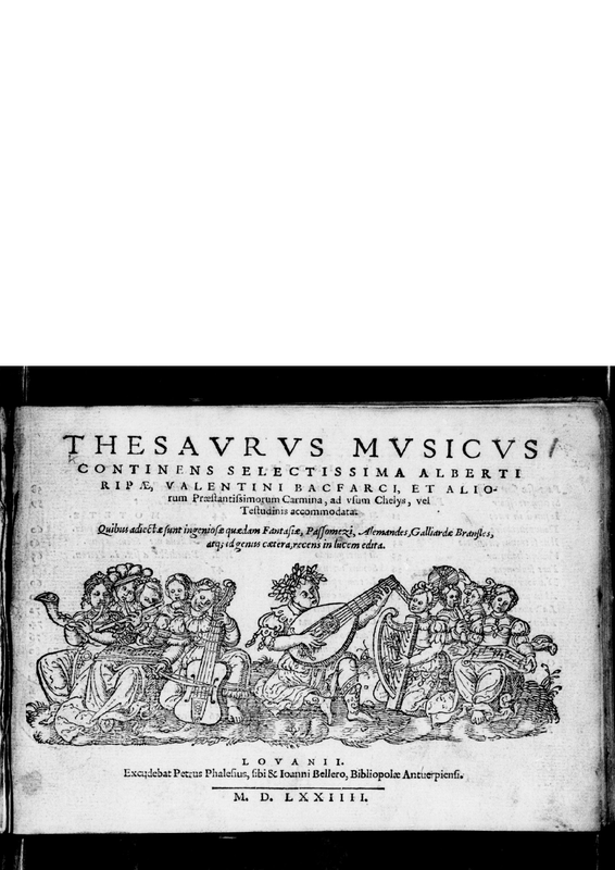 | Alternative. Title | Thesaurus musicus continens selectissima Alberti Ripae, Valentini Bacfarci, et aliorum praestantissimorum carmina, ad usum Chelys, vel Testudinis accomodata. Quibus adiectae sunt ingeniosae quaedam Fantasiae, Passomezi, Alemandes, Galliardae Bransles, arq; id genus caetera, recens in lucem edita. |