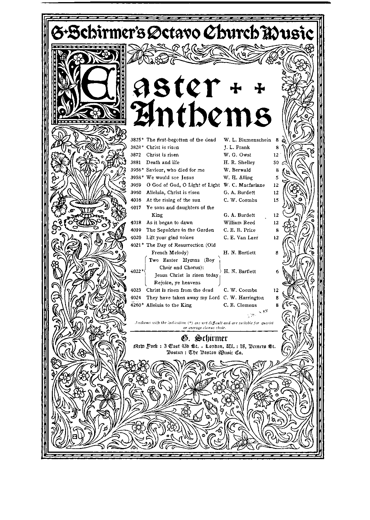 | Genre Categories | Anthems; Religious works; For voice, mixed chorus, piano; |