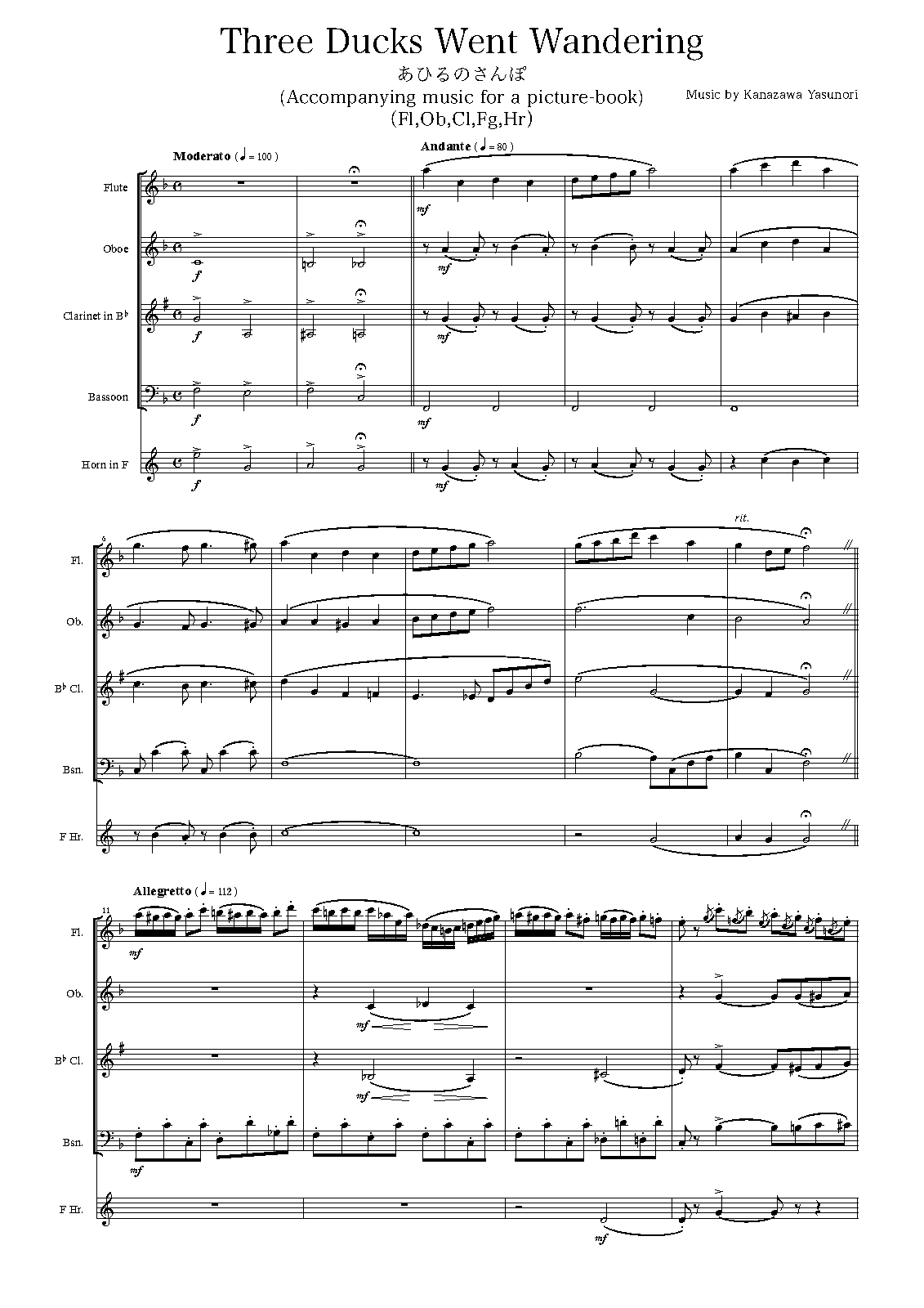 | Instrumentation | Flute, Oboe, Clarinet (B♭), Bassoon, Horn (F) |