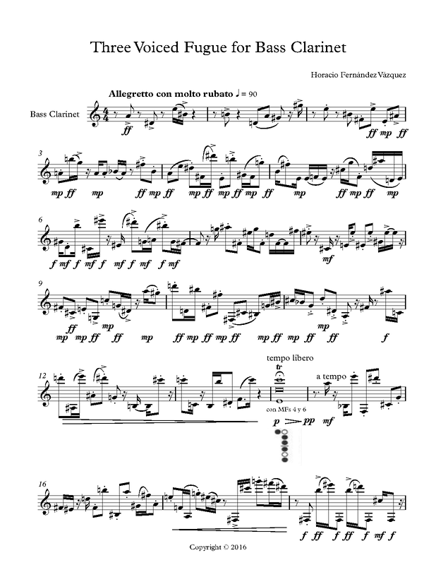 | Work Title | Three voiced Fugue for Solo Bass Clarinet |