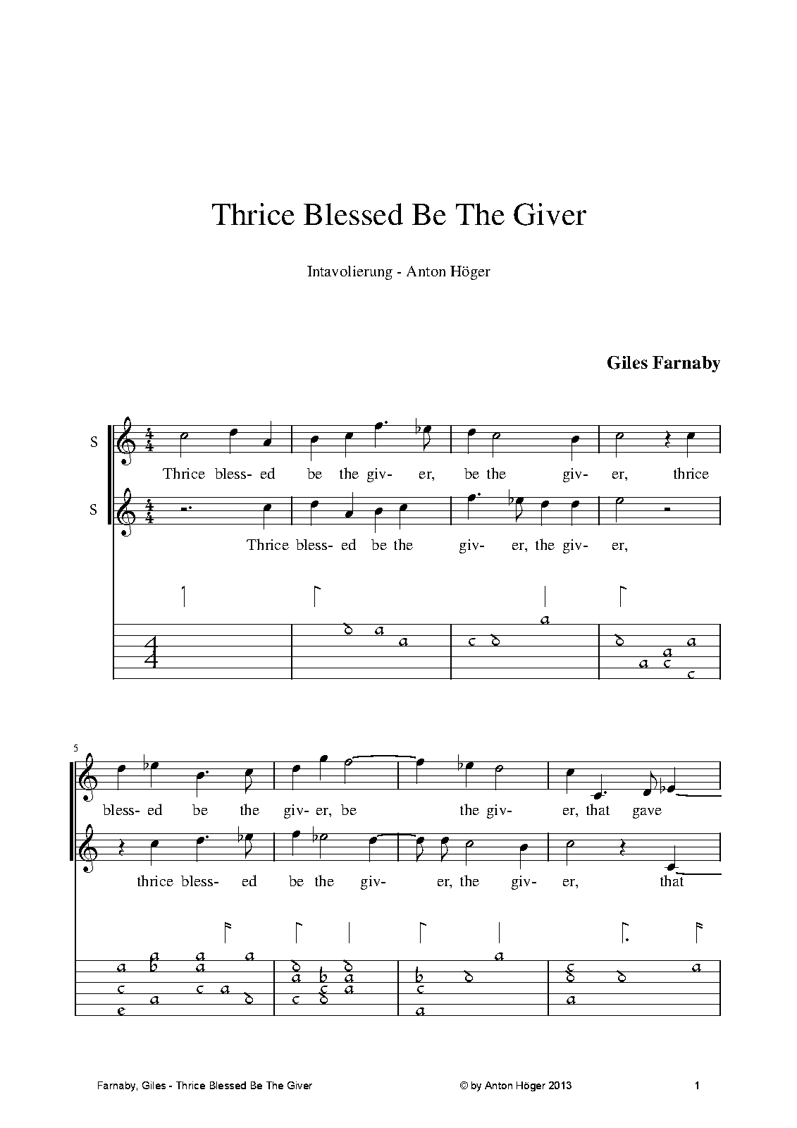 | Work Title | Thrice Blessed be the Giver |