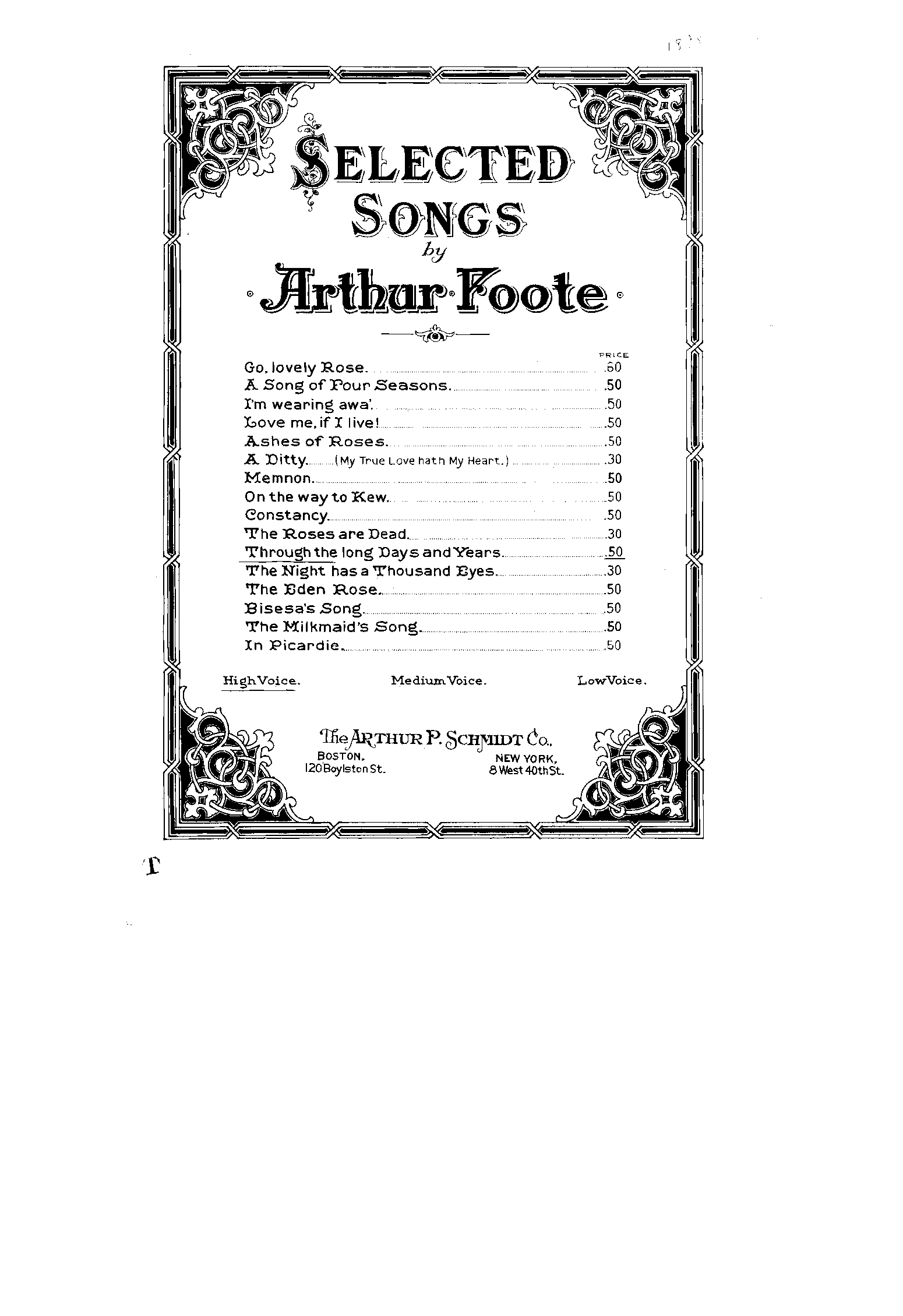 | Genre Categories | Songs; For voice, piano; For voices with keyboard; |