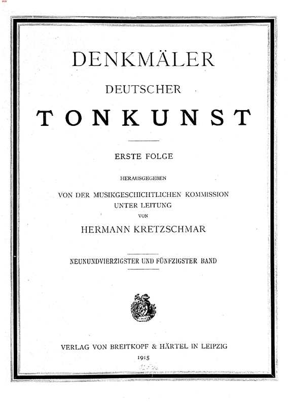 Denkmäler deutscher Tonkunst, Erste Folge; Bd.49-50 Leipzig: Breitkopf und Härtel, 1915. Plate D.D.T. IXL, L.