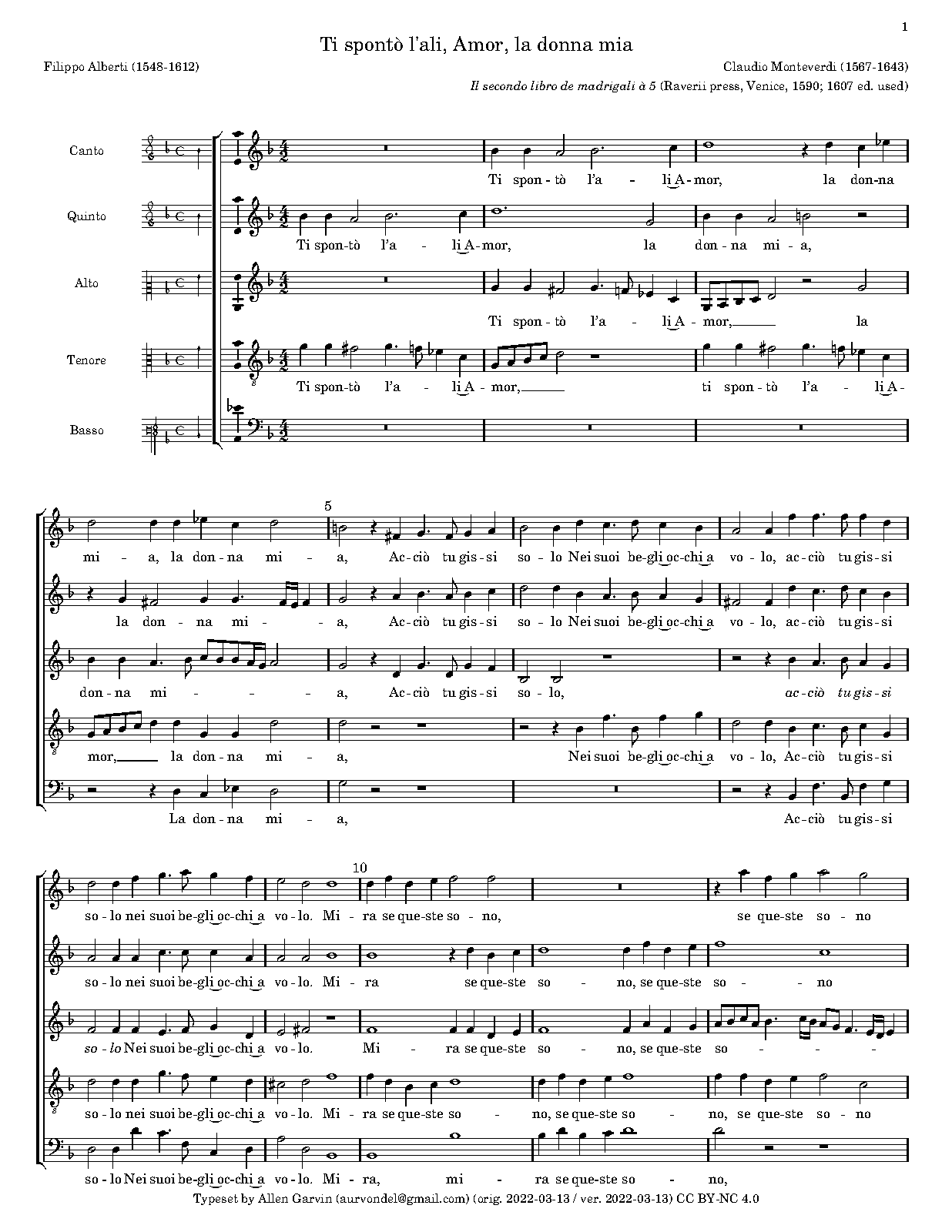 | Work Title | Ti spontò l'ali, Amor, la donna mia |