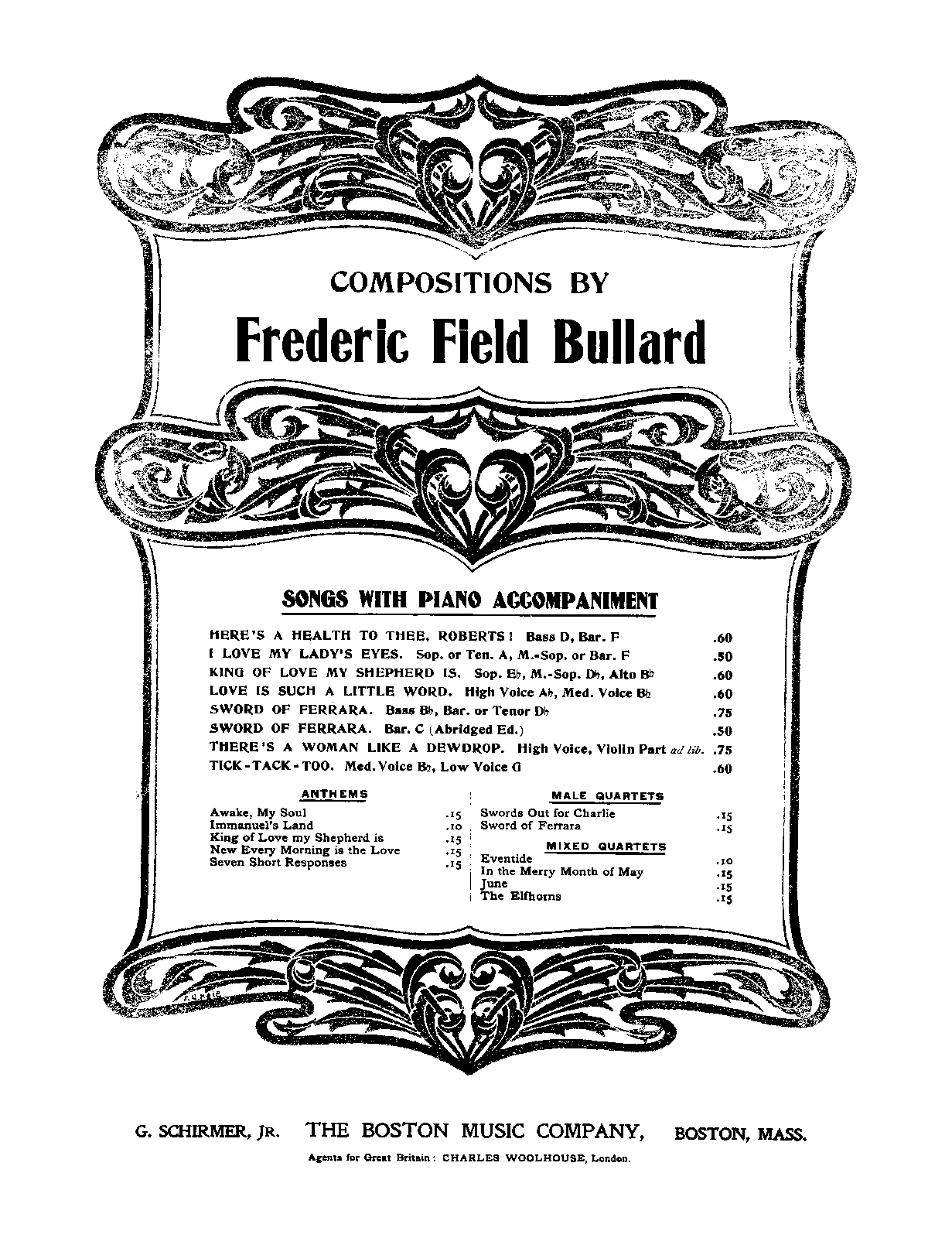 | First Publication. | 1903 – Boston: Boston Music Co. |