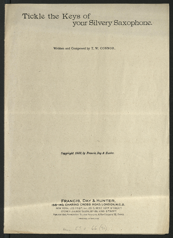 | Work Title | Tickle the Keys of Your Silvery Saxophone |