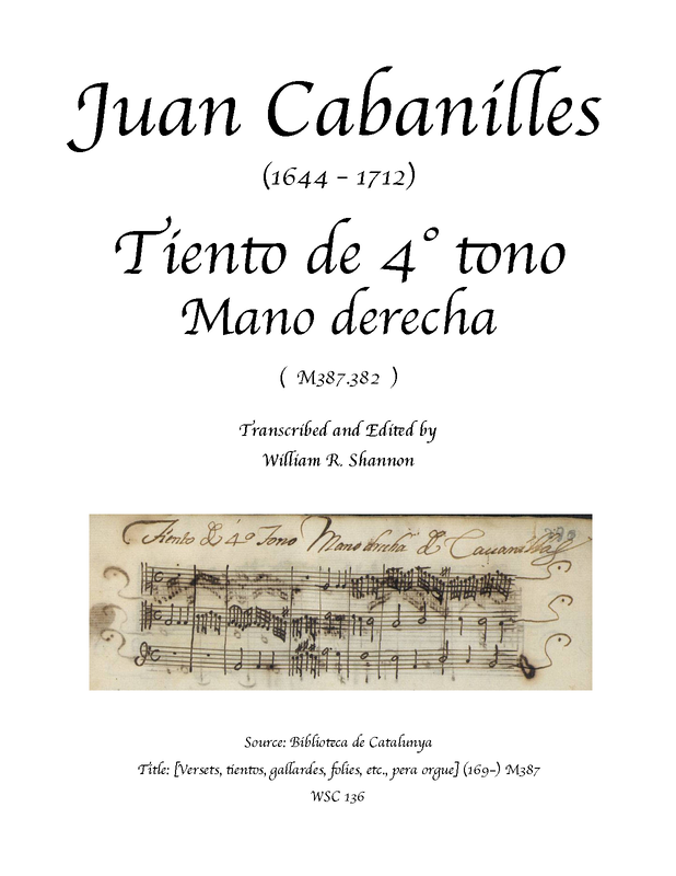 | Work Title | Tiento de cuarto tono Mano derecha |