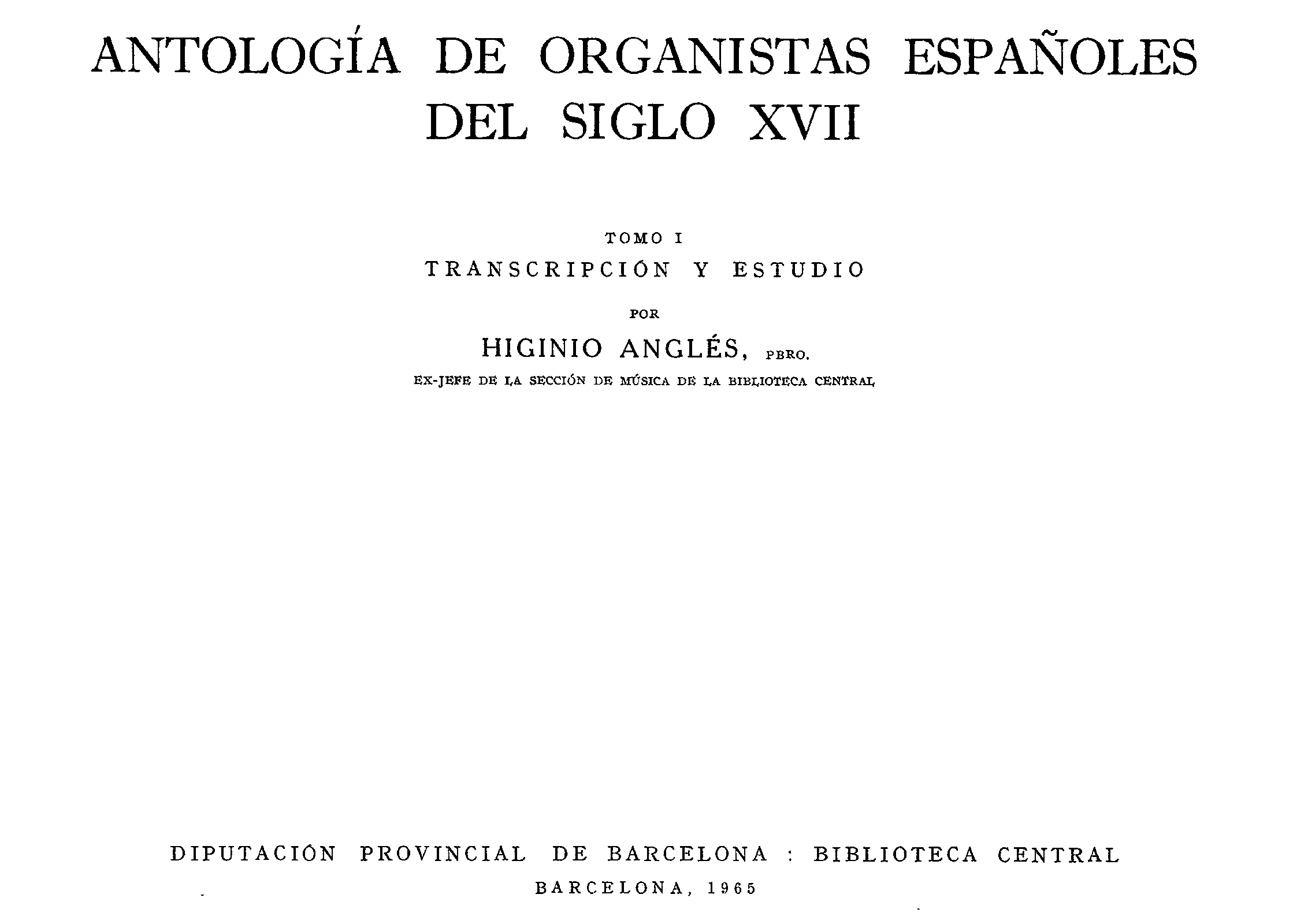Publisher. Info. Antologia de organistas españoles del siglo XVII, Vol.1