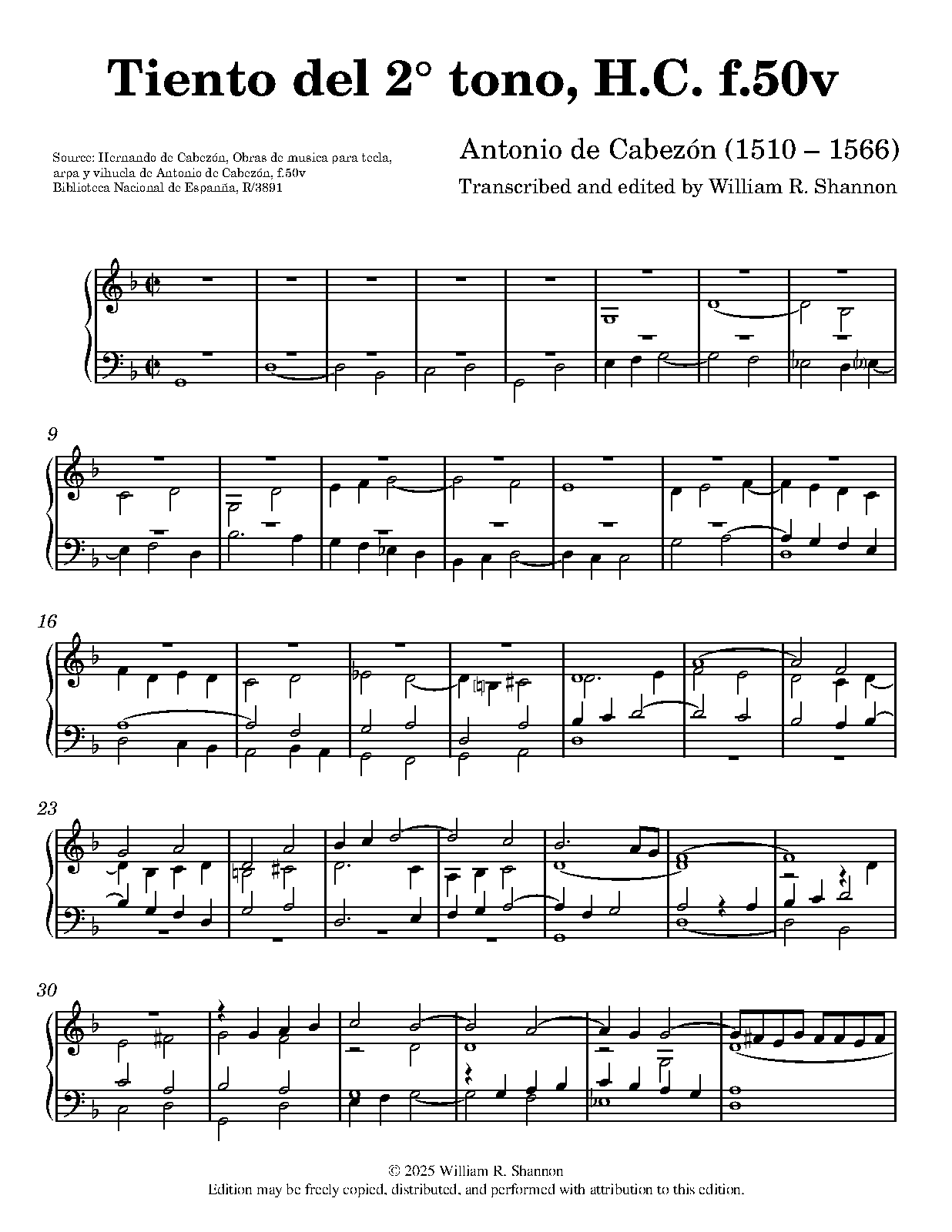 | Alternative. Title | Tiento del 2° tono, H.C. f.50v |