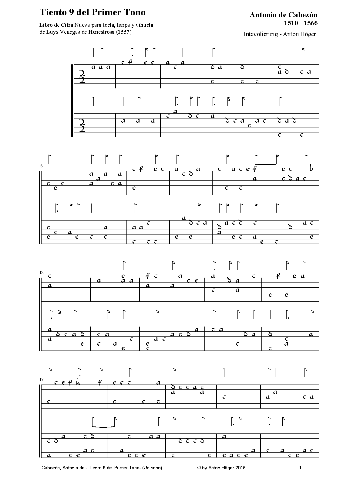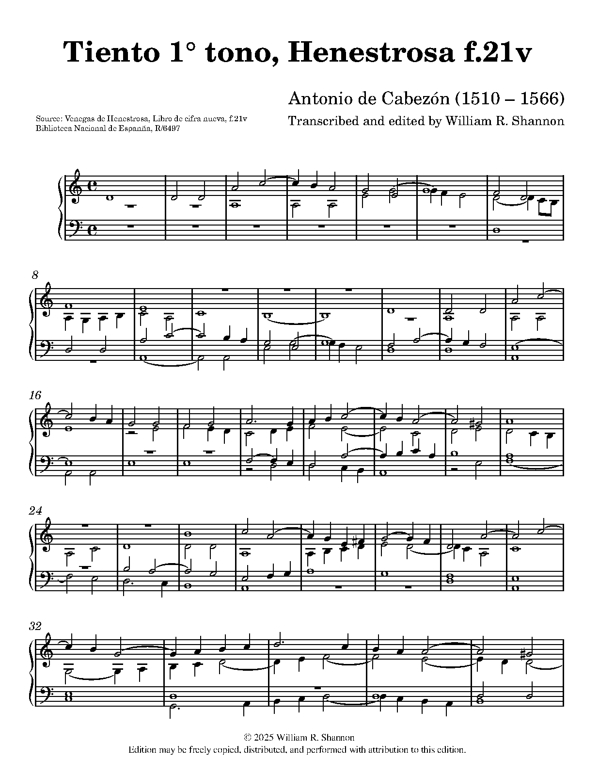 Antonio de Cabezón Tiento 1° tono, Henestrosa f.21v, Ronald McKean Organist