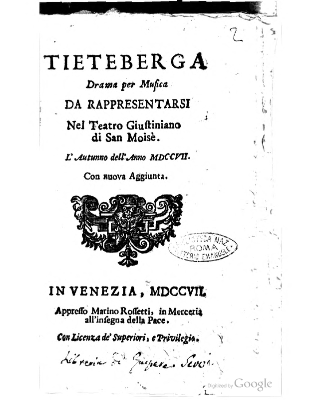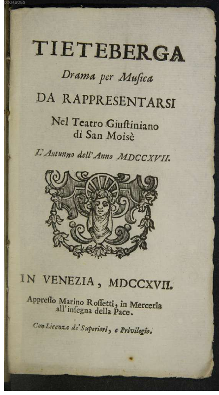 Alternative. Title Drama per musica da rappresentarsi nel Teatro di San Moisè l'autunno dell'anno 1717.