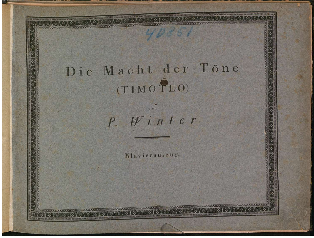 | Alternative. Title | Timoteo o Gli effetti della musica. Cantata. Timotheus. Die Macht der Töne. Kantate. (Alexander's Feast; The Power of Music) |