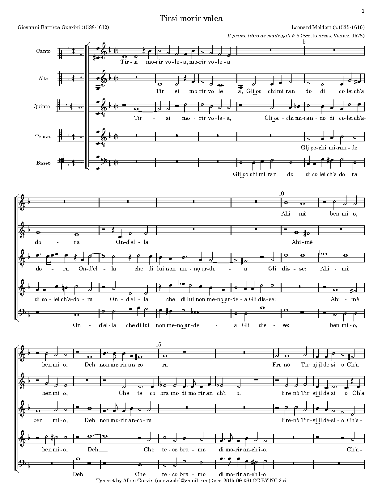 This is the earliest known madrigal setting of Guarini's Tirsi verse.
