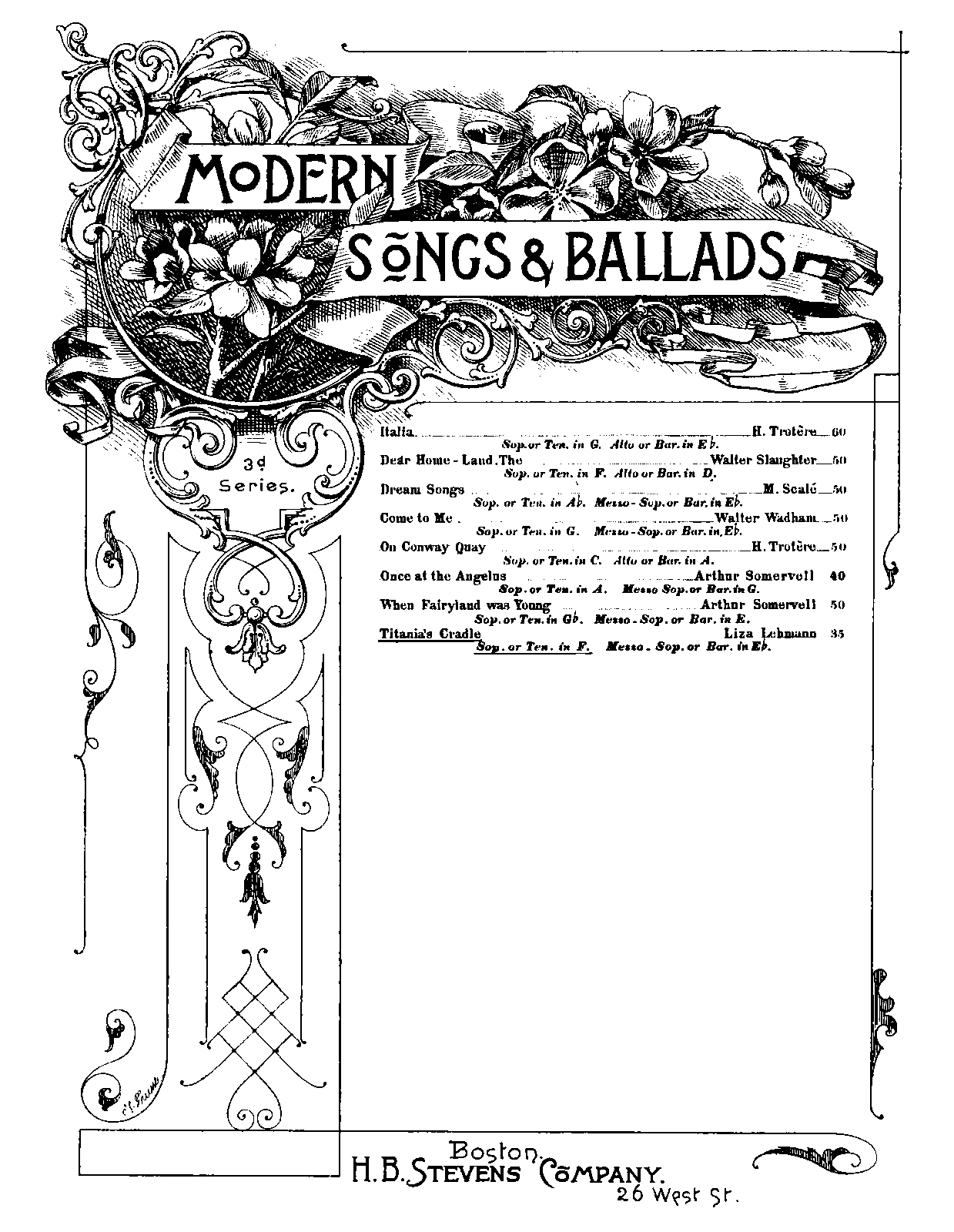 | Genre Categories | Songs; For voice, piano; For voices with keyboard; |