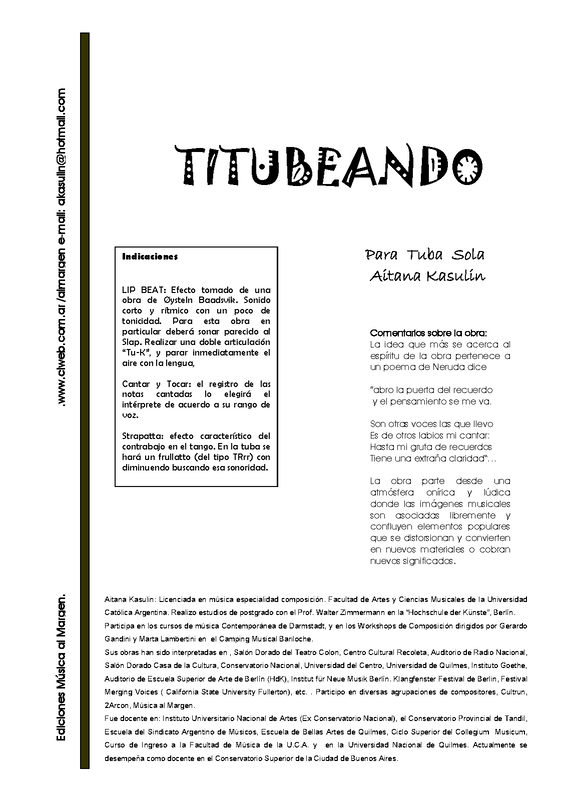 | Alternative. Title | Obra con técnicas extendidas para tuba sola (contemporánea) |